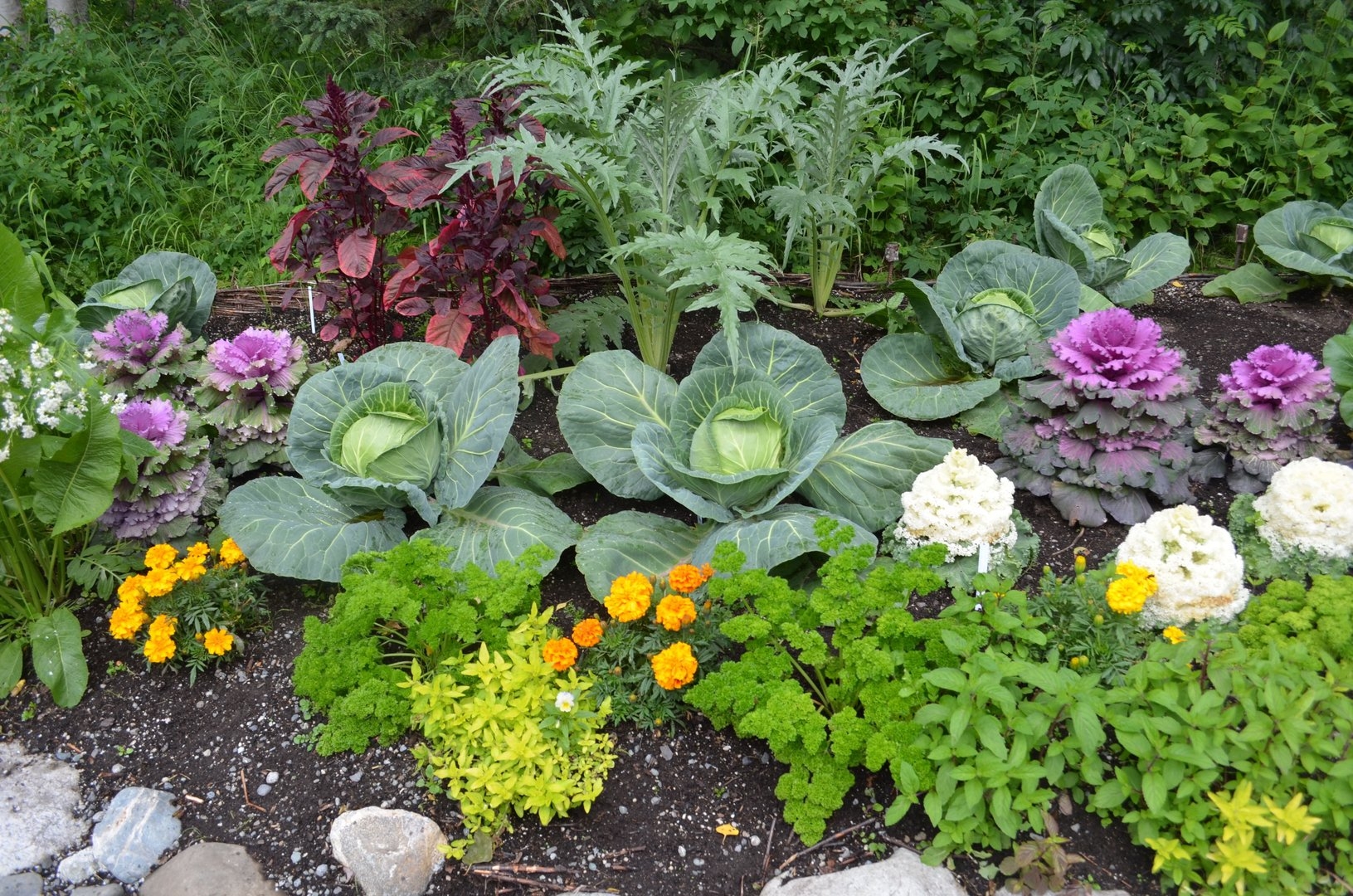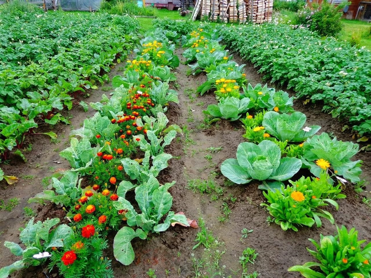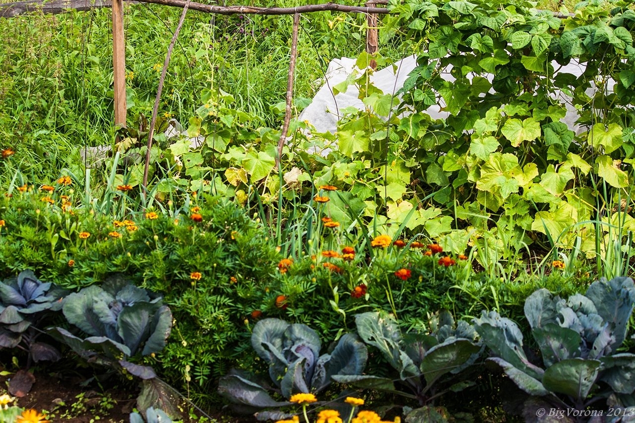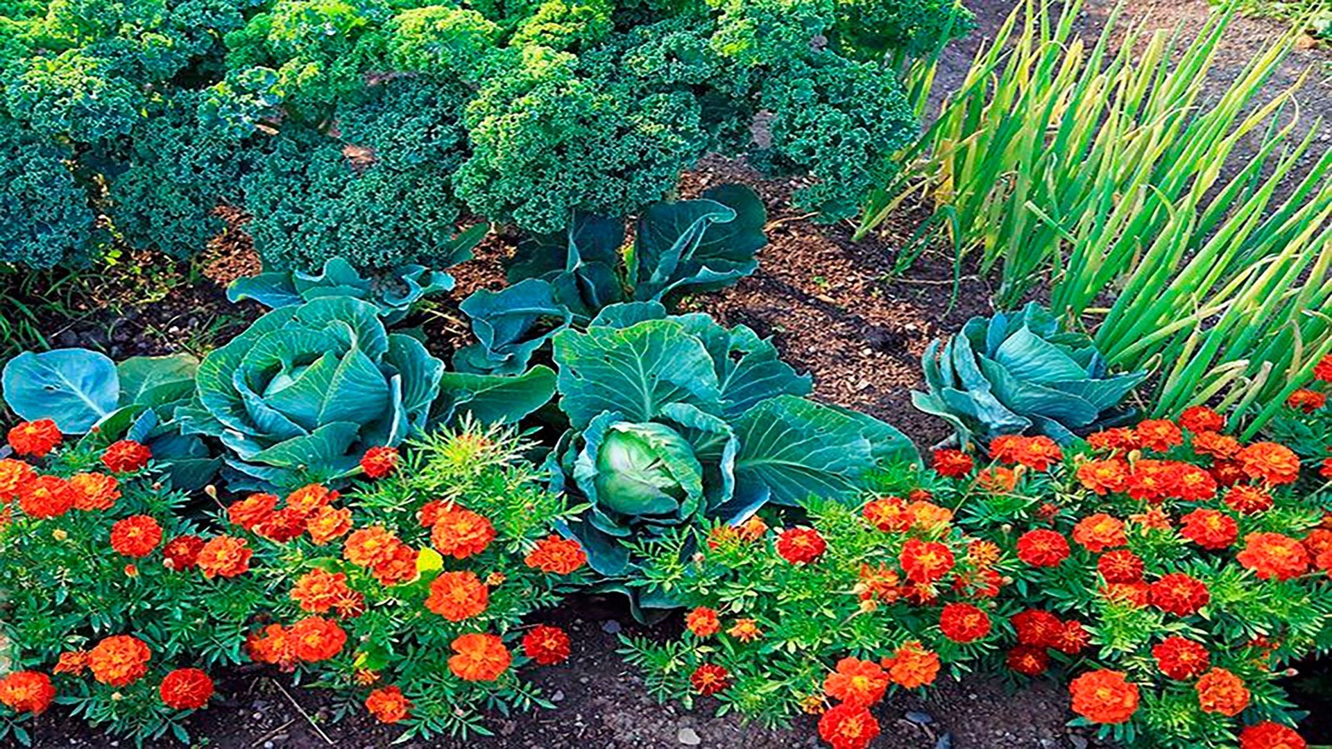 Капуста и бархатцы соседство