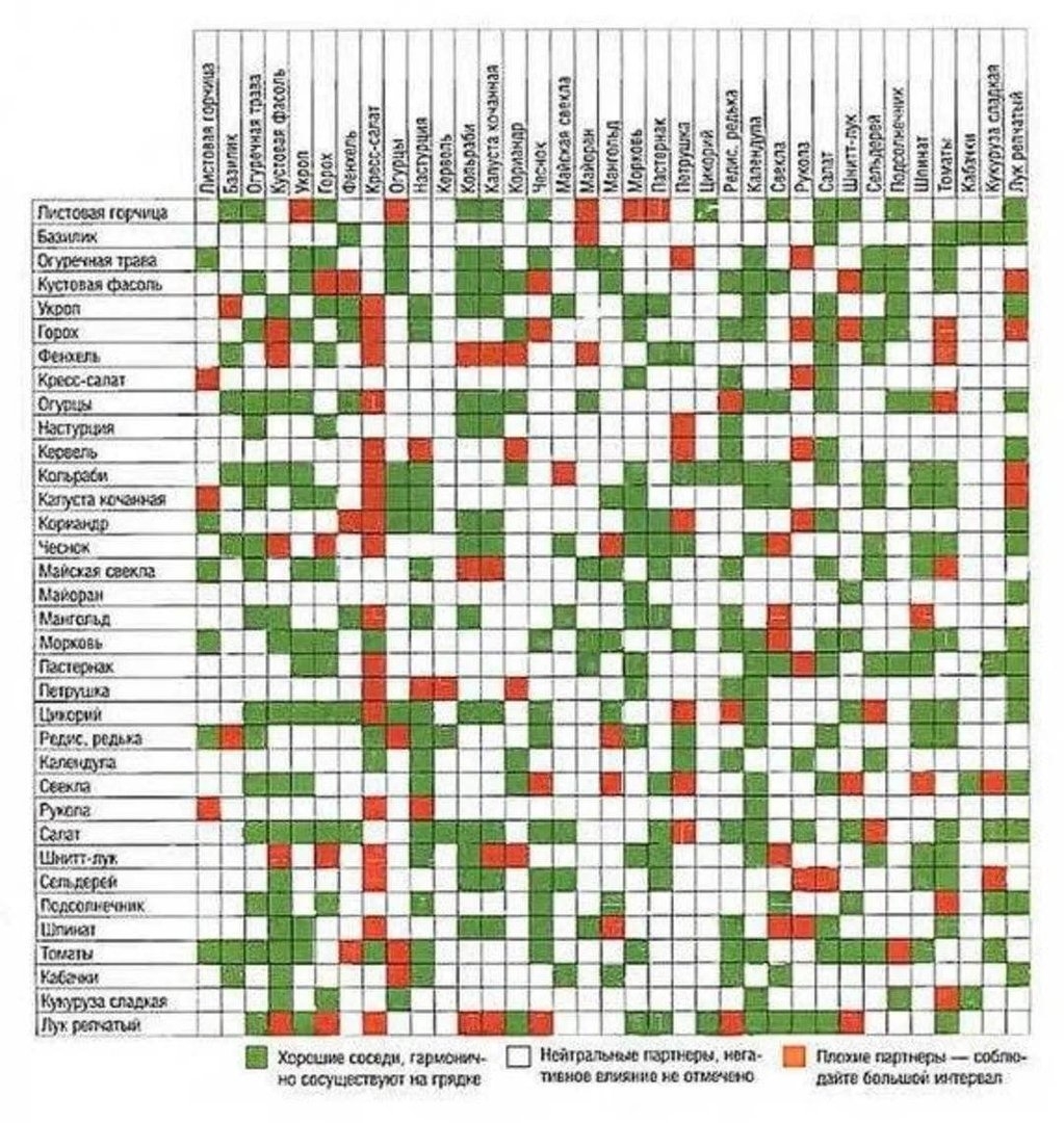 Таблица совместимости растений на огороде соседство