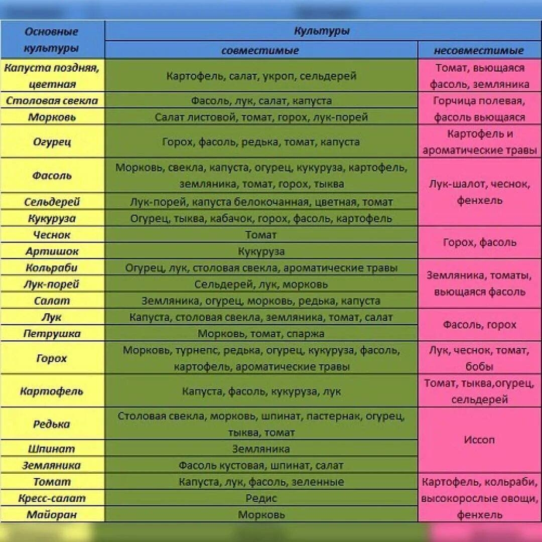 Таблица совместимости овощных культур при посадке на огороде