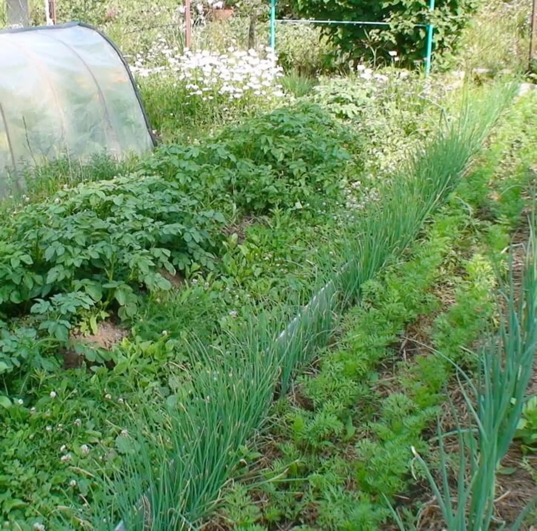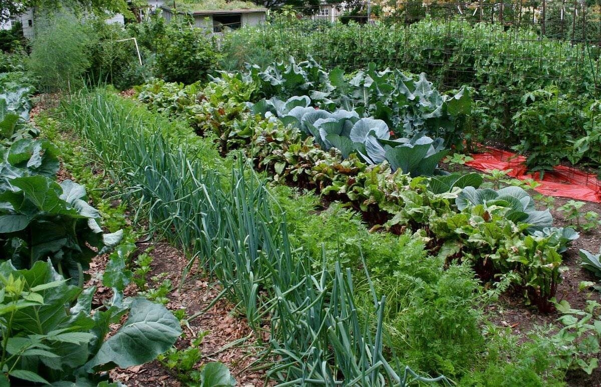 Соседство овощей на грядках в огороде