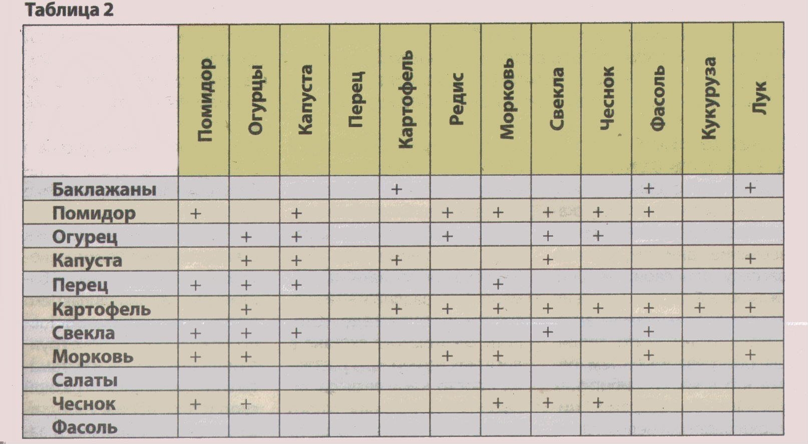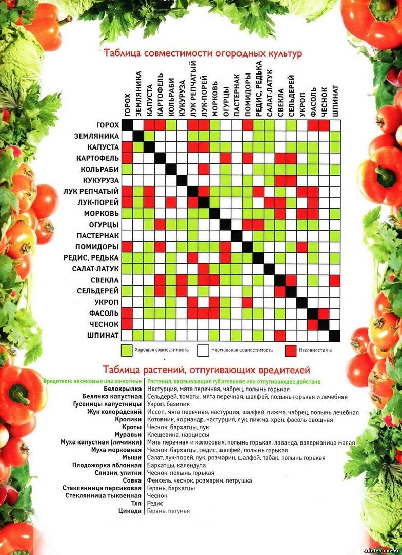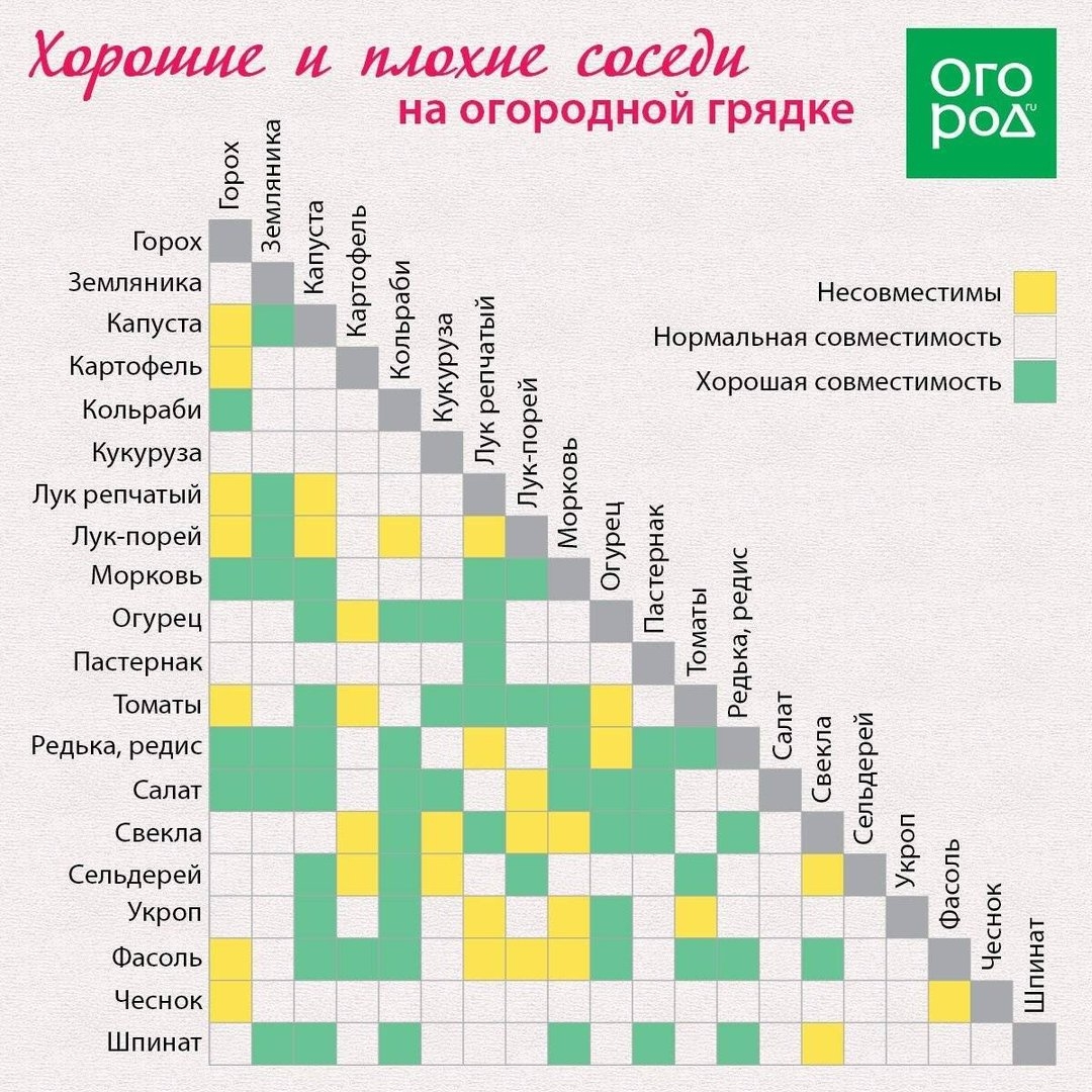 Таблица совместимости на грядке овощных культур