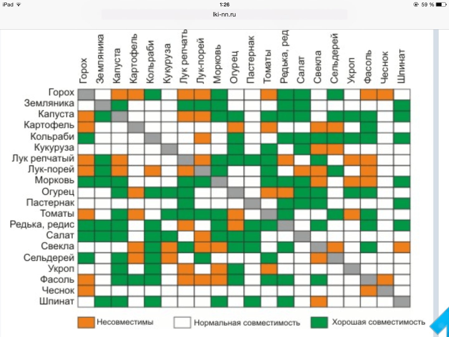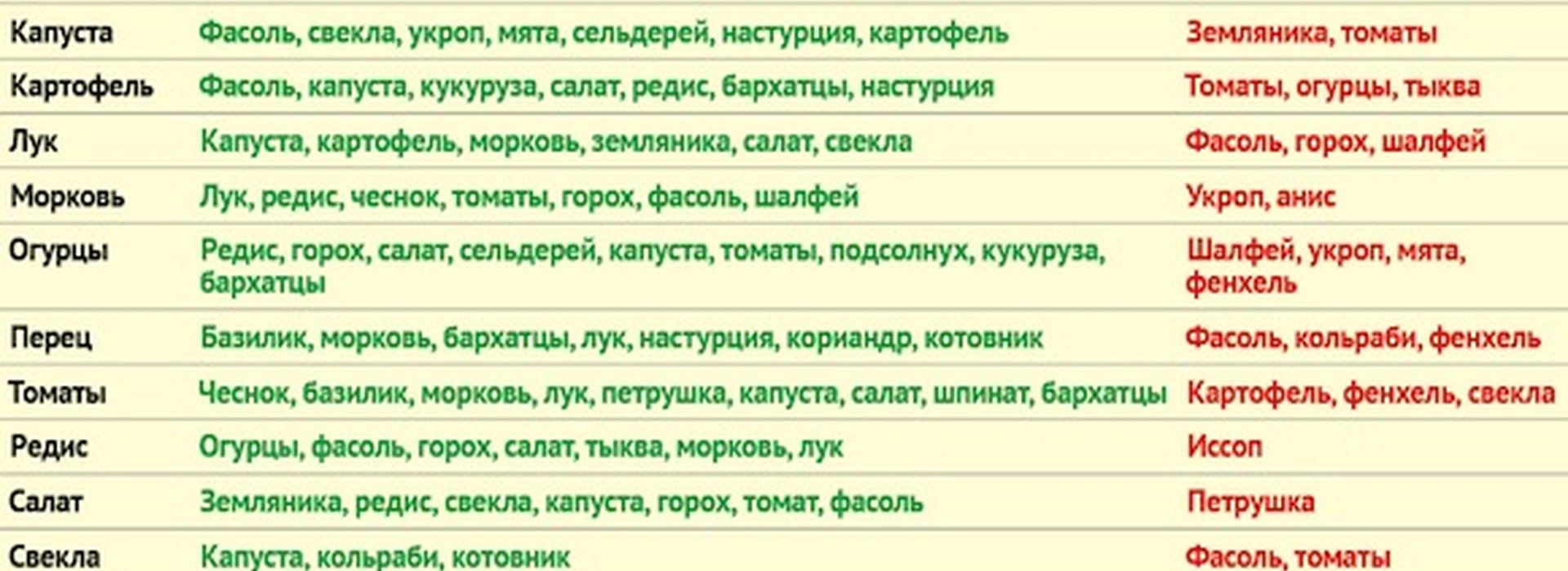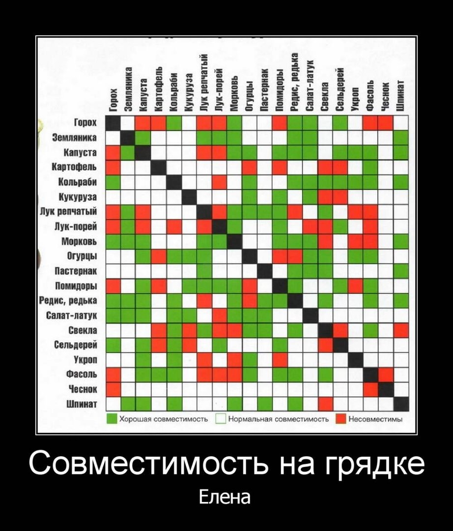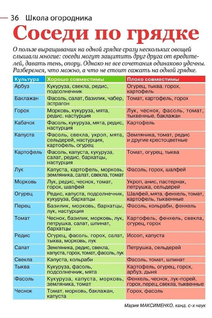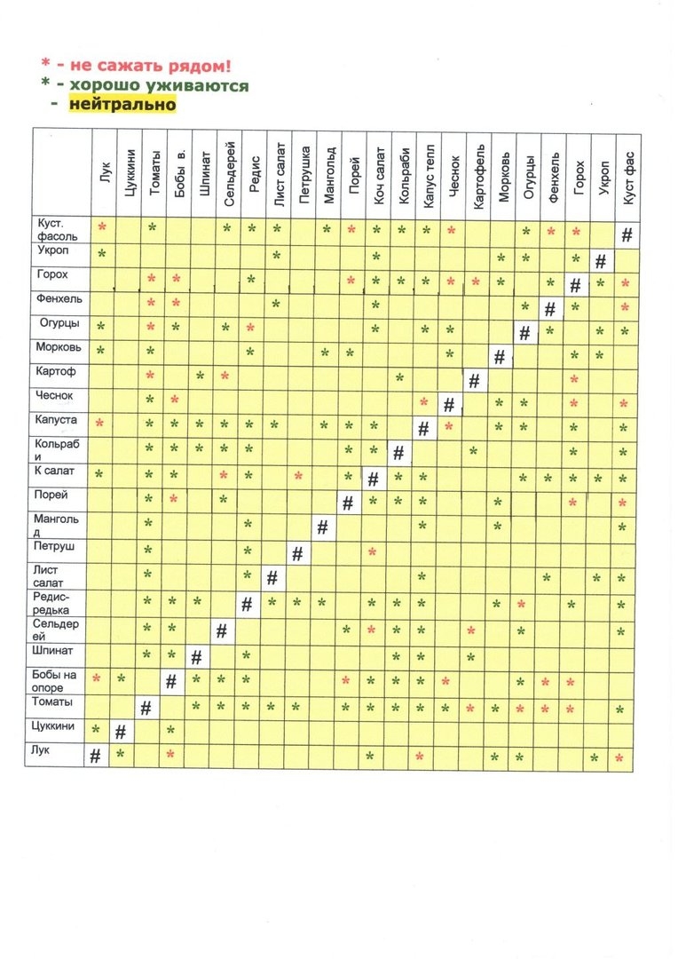 Таблица совместимости на грядке