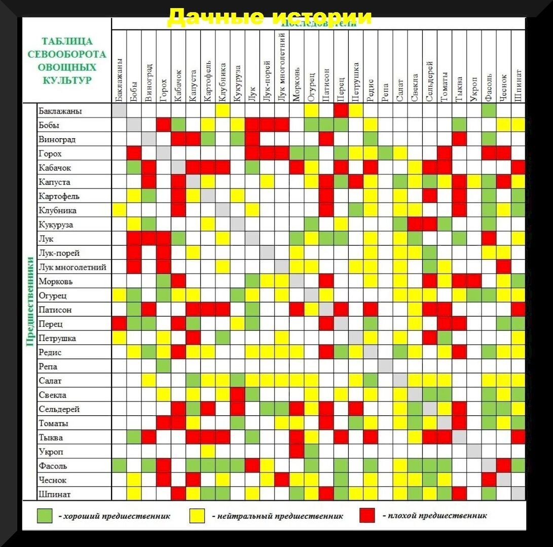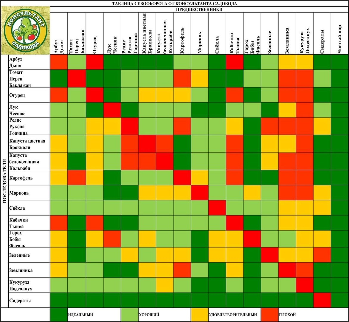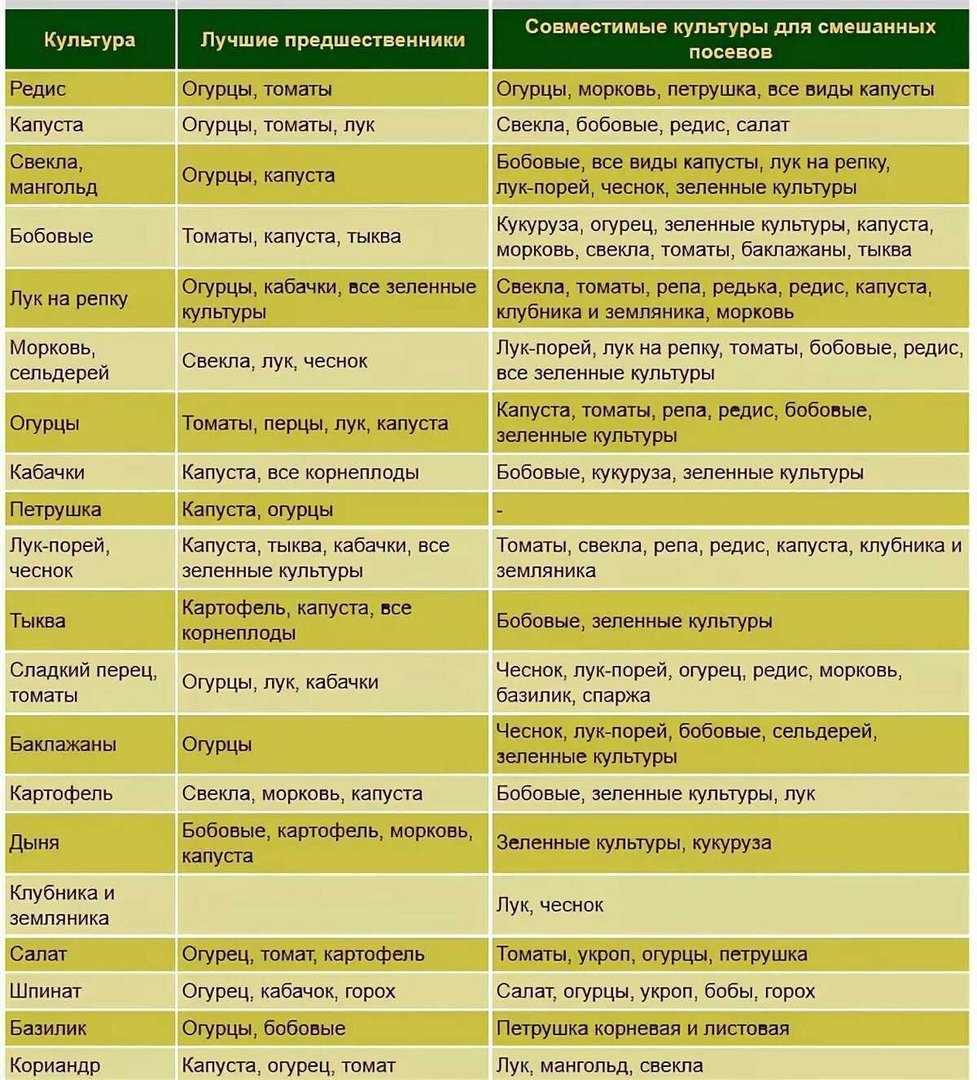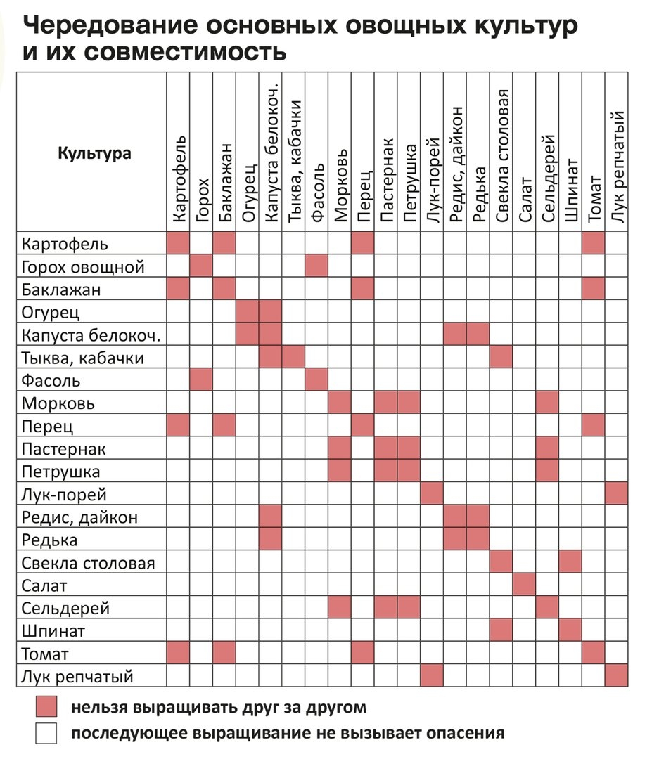 Севооборот овощей на грядках таблица совместимости