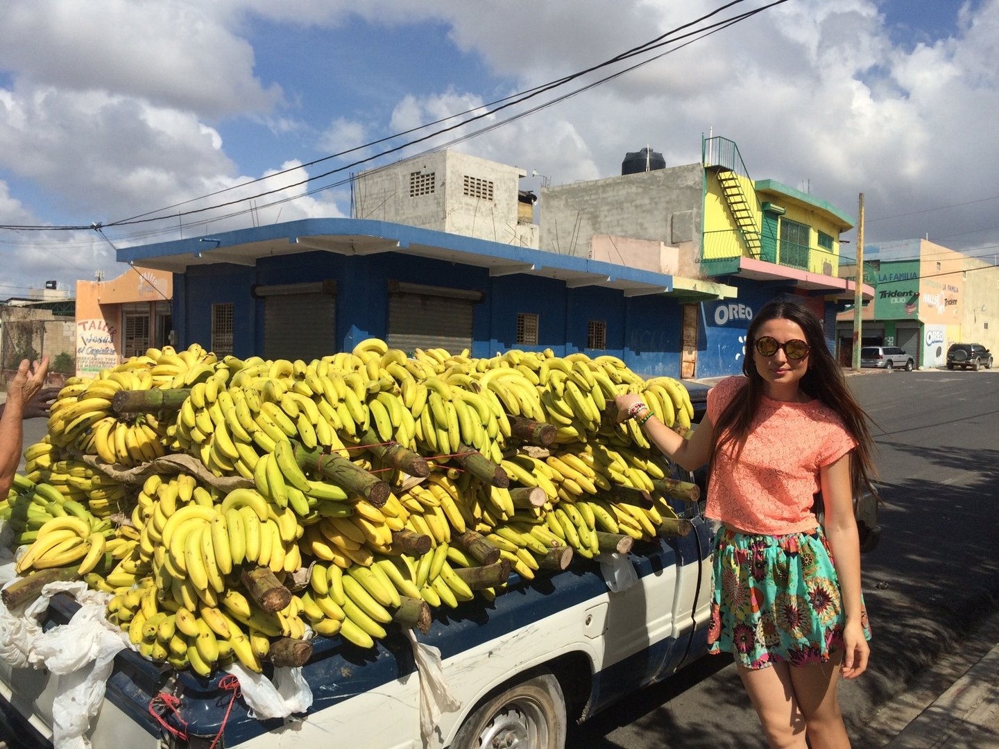 Девушка выбирает банананы