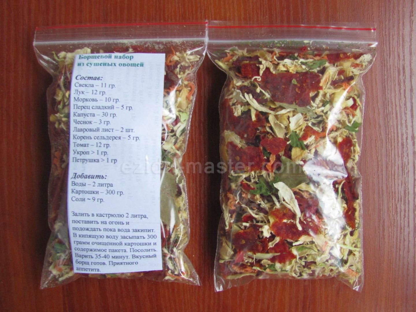Сушеные овощи упаковка