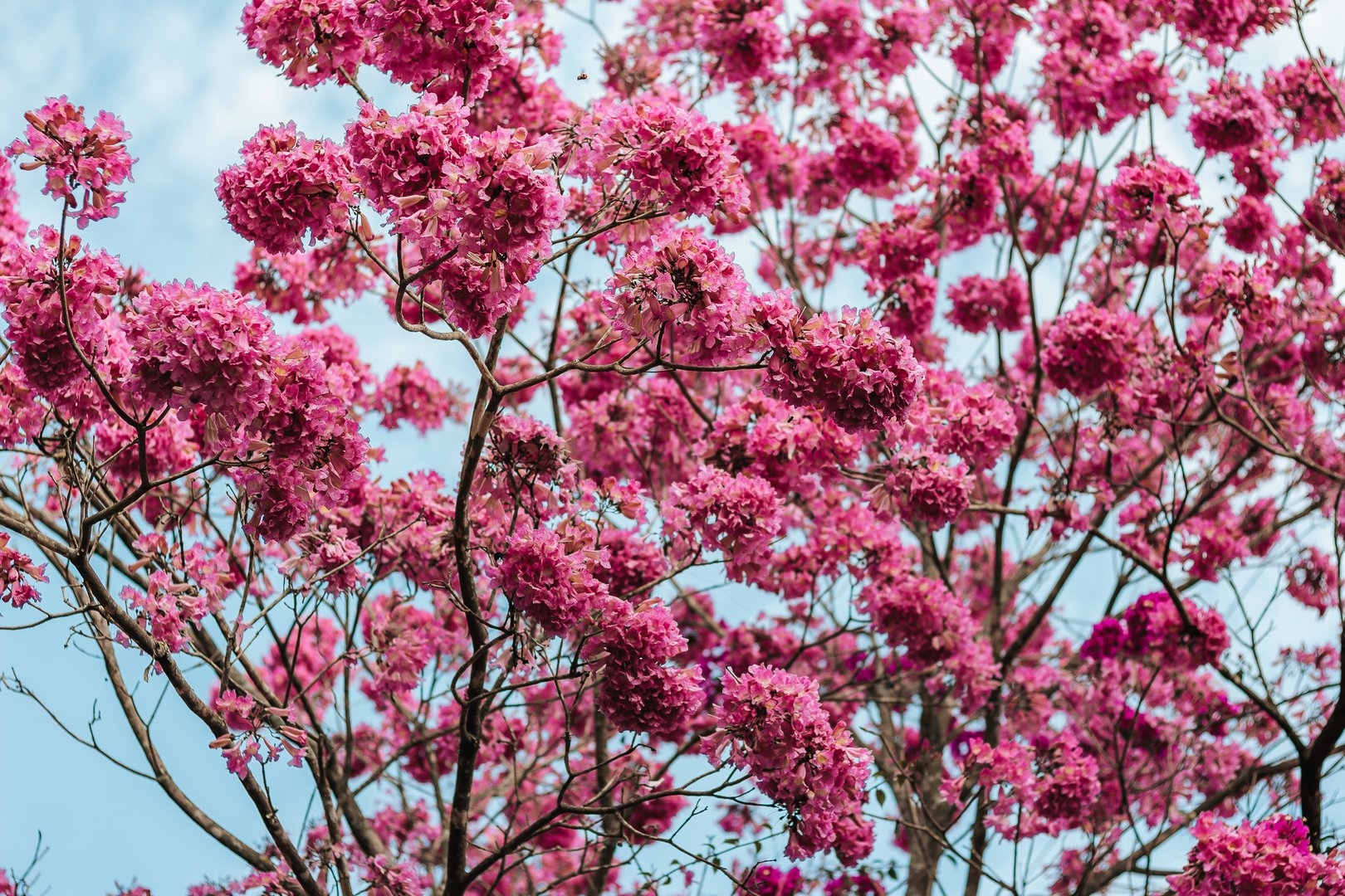Дерево цветет розовыми цветами