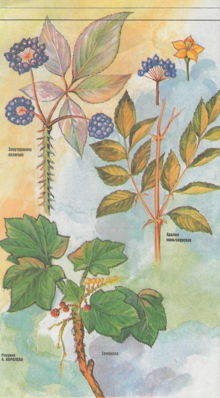 Заманиха высокая Ботаническая иллюстрация
