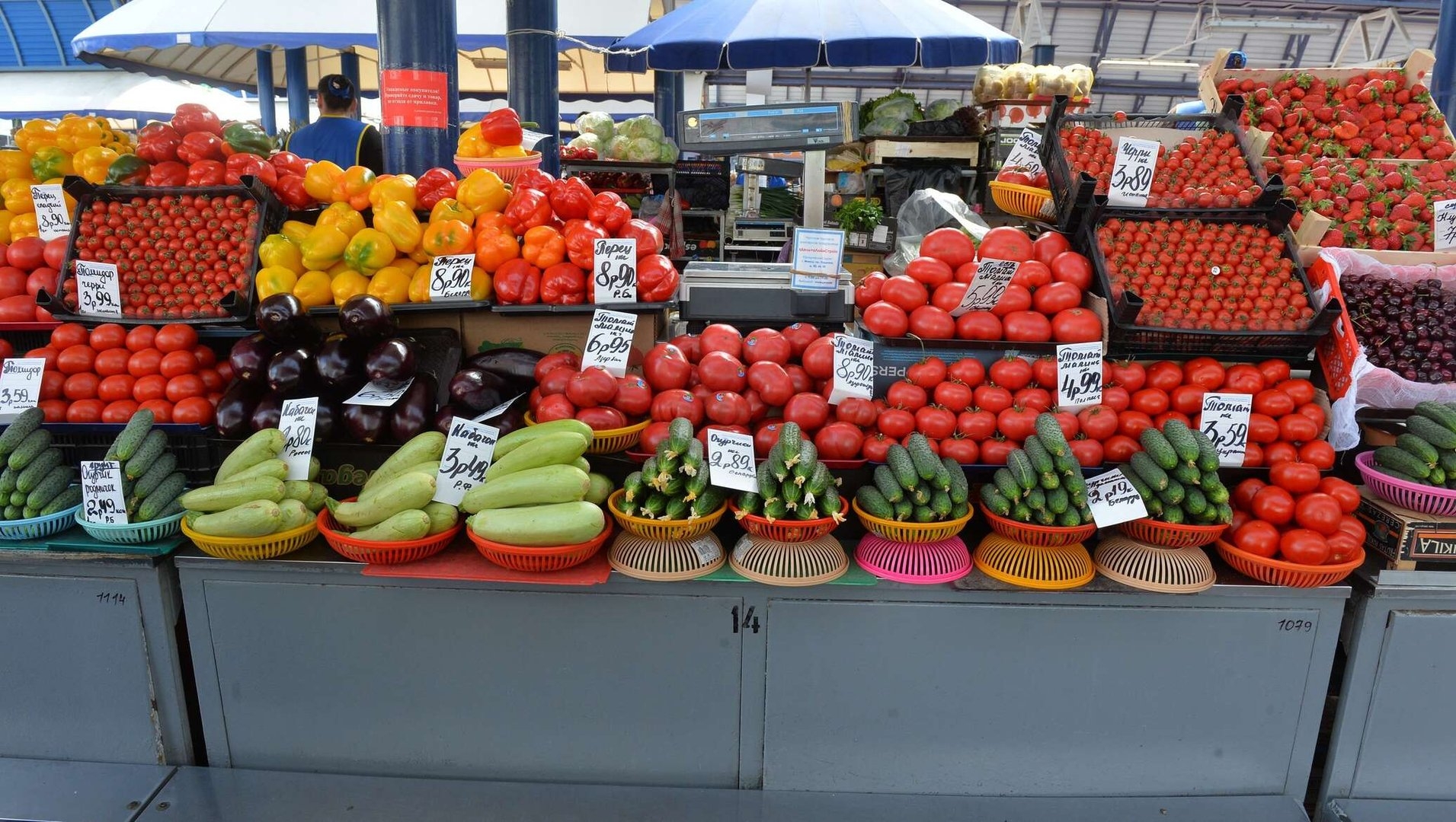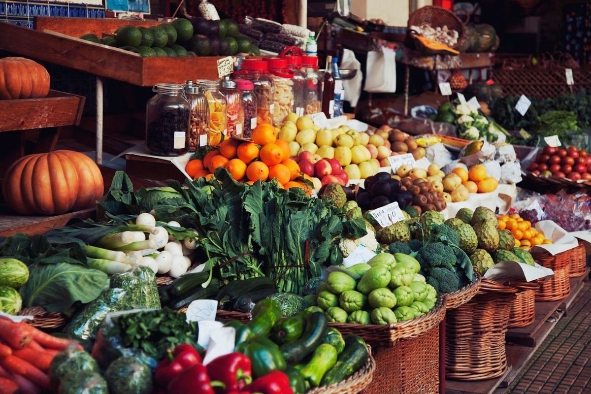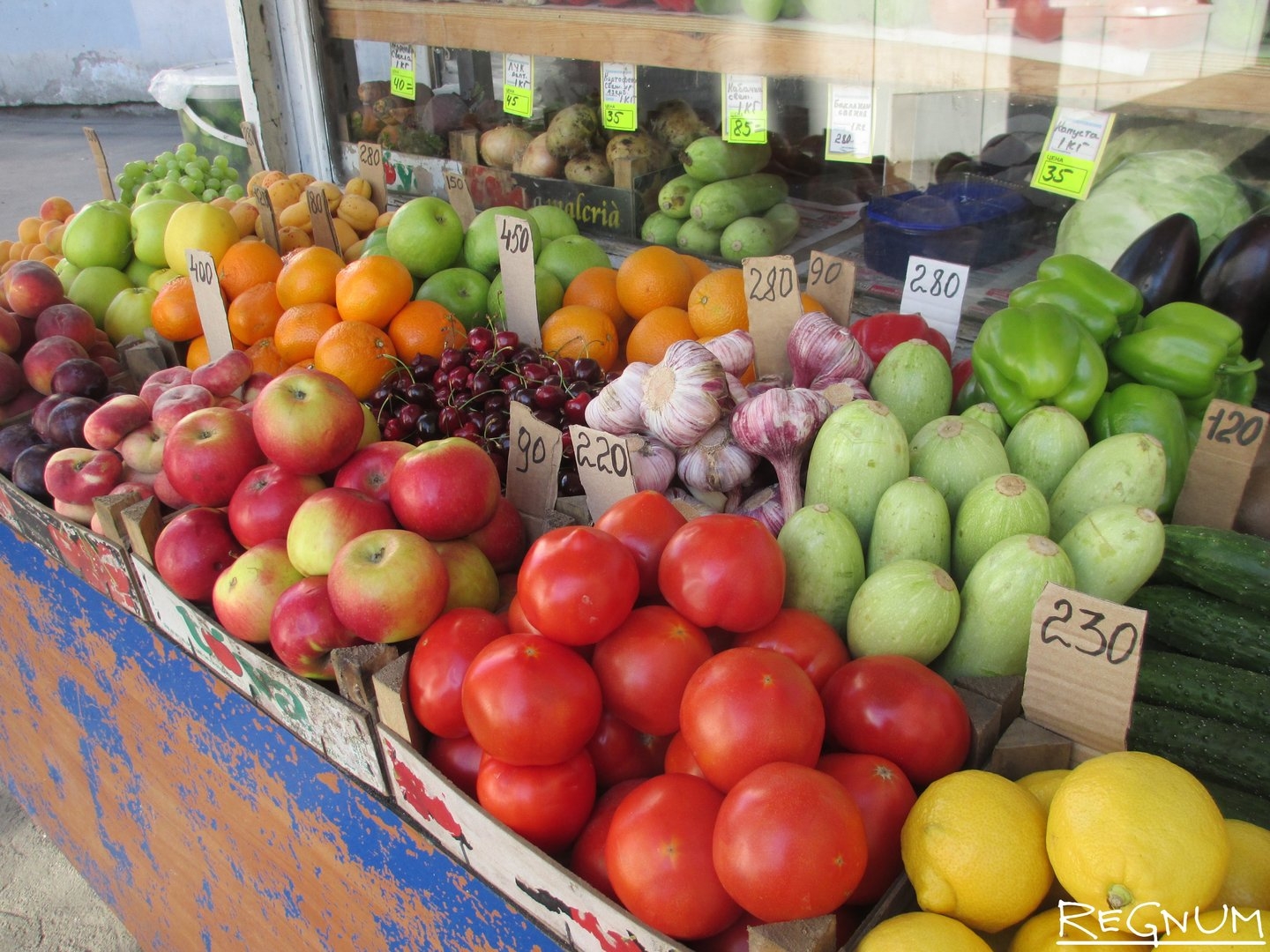 Прилавок с овощами и фруктами