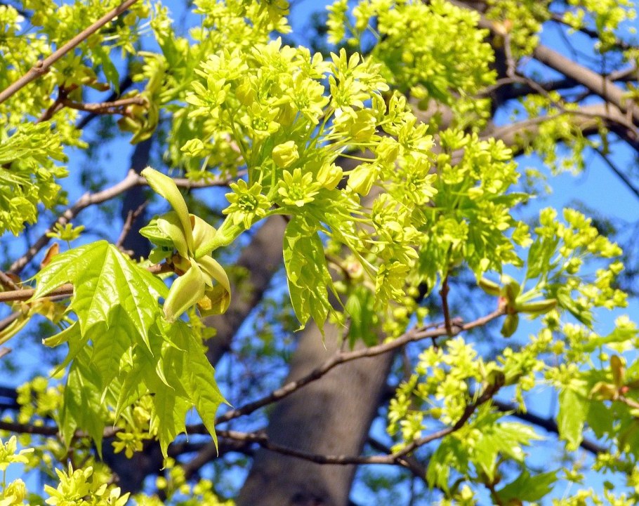 Клен остролистный цветение