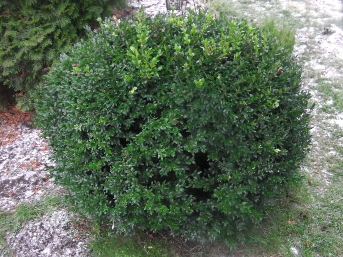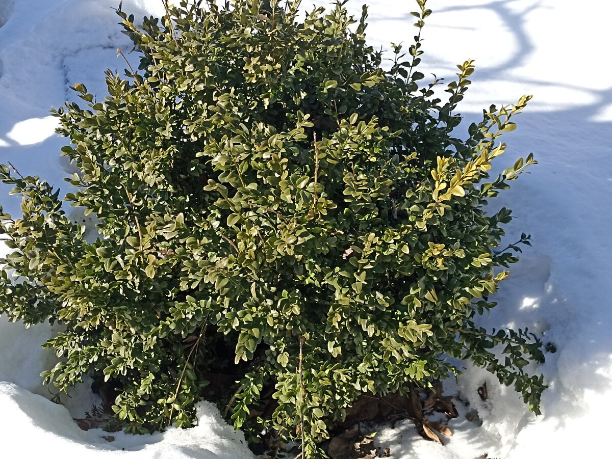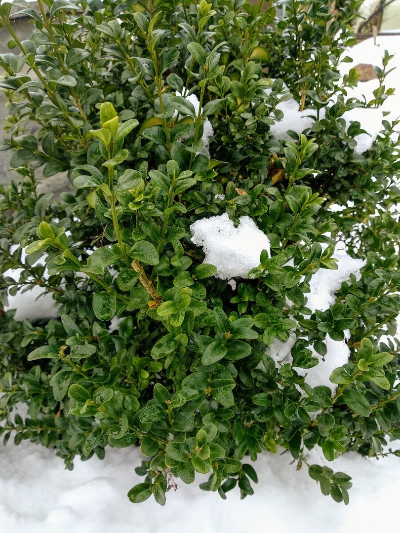 Самшит вечнозеленый зимой
