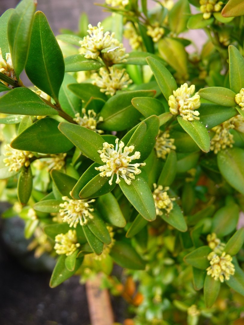 Цветение самшита вечнозеленого