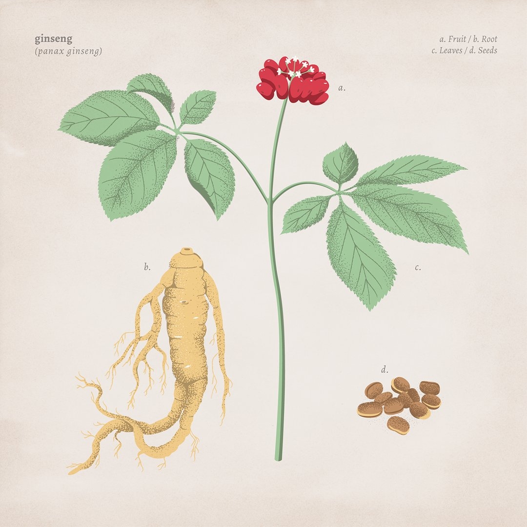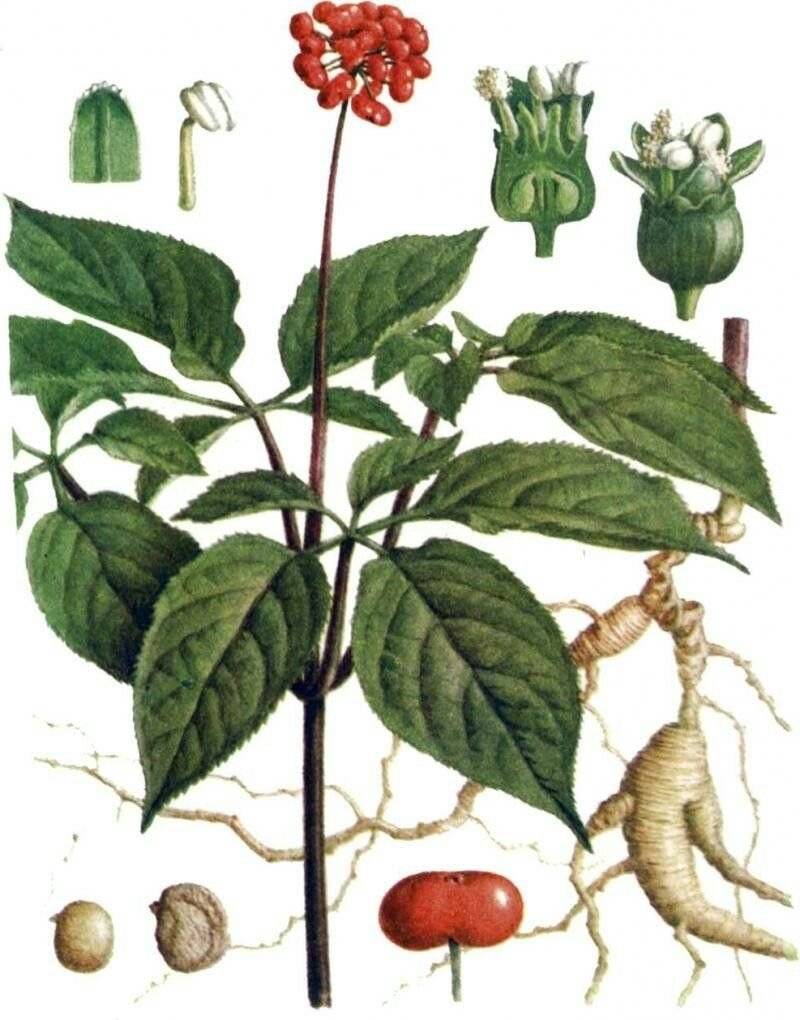 Женьшень Ботанический рисунок