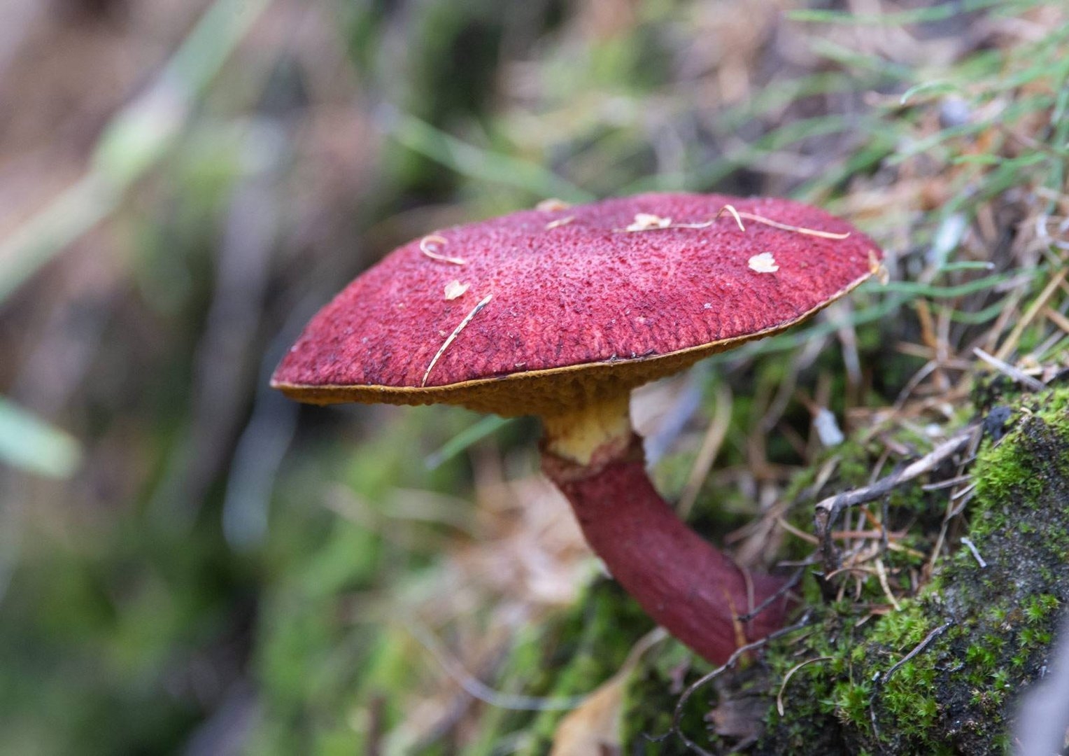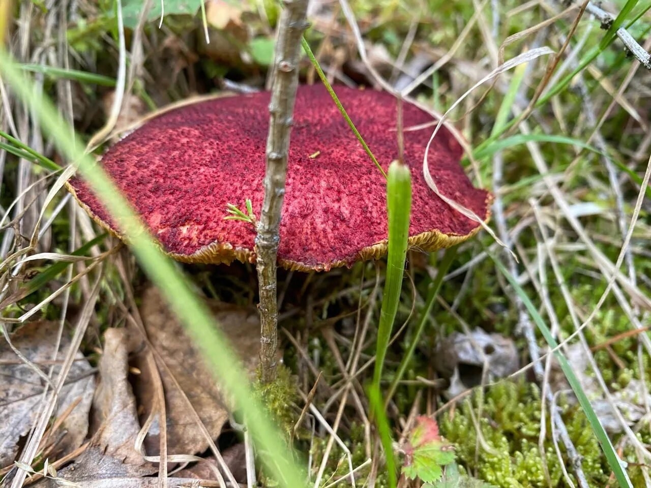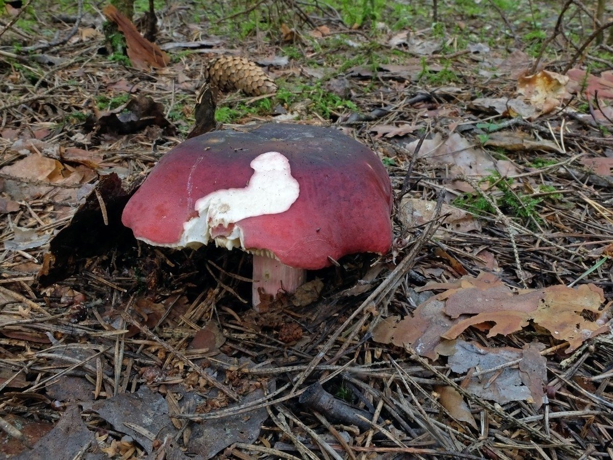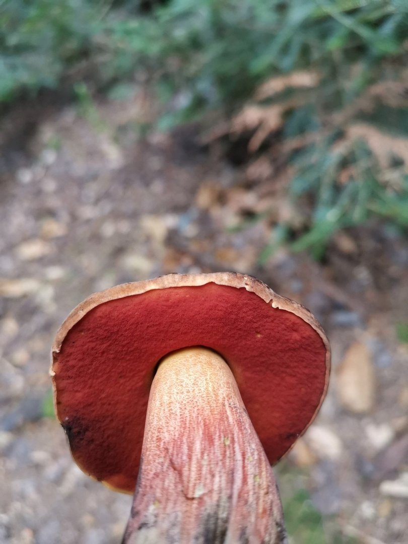 Гриб с бордовой шапкой