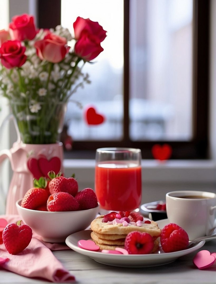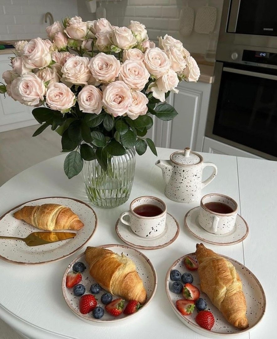 Красивый завтрак с цветами