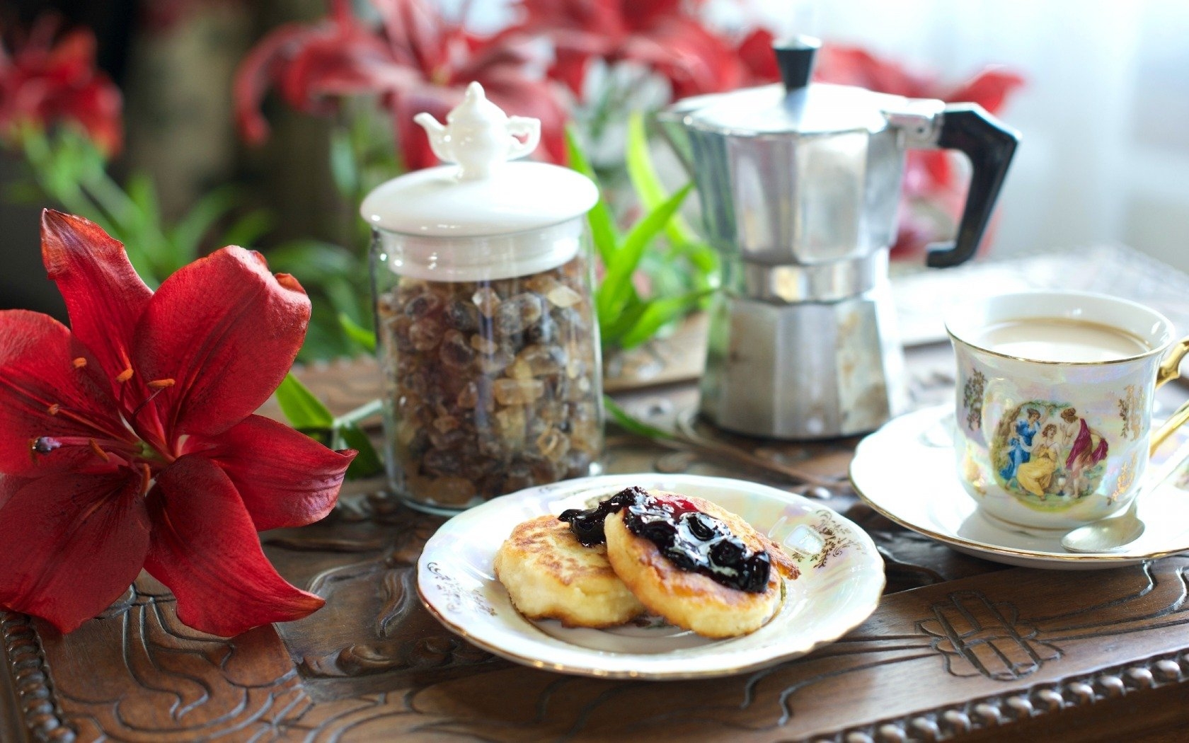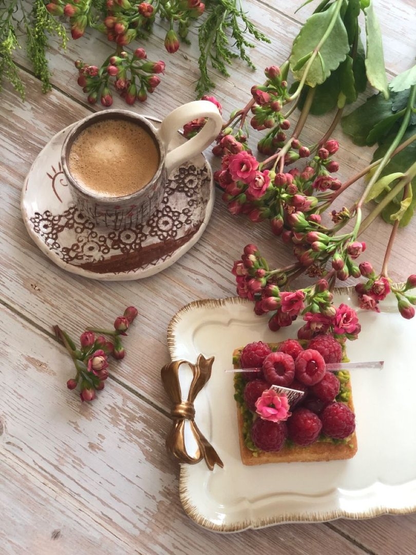 Утро цветы кофе