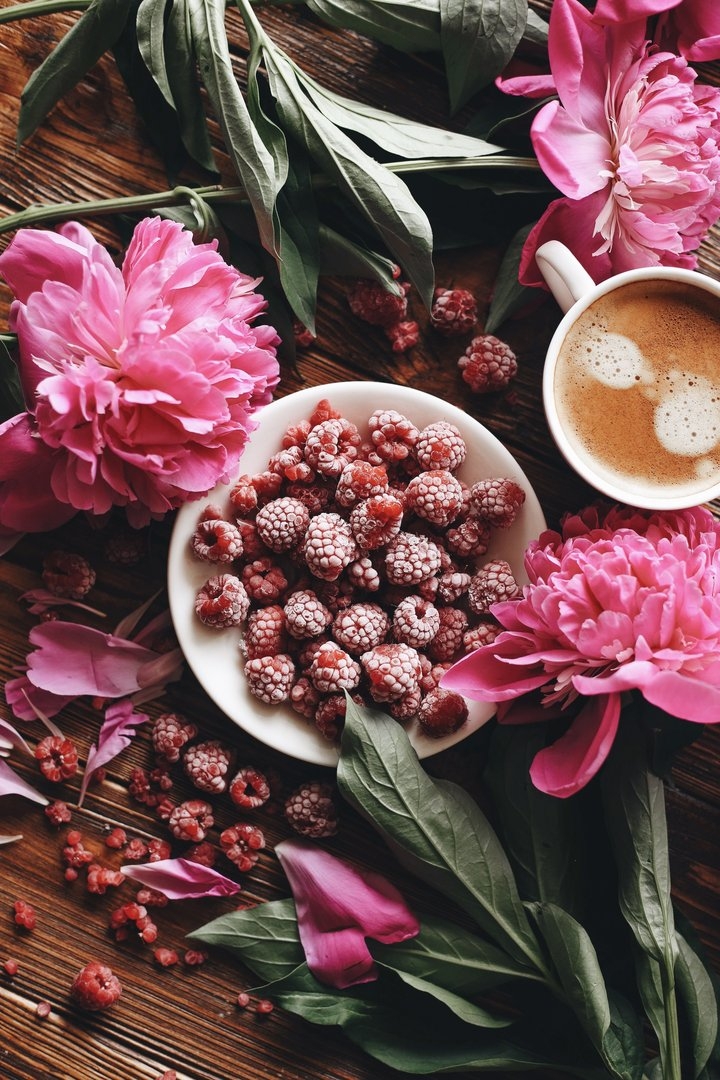 Доброе утро пионы и кофе