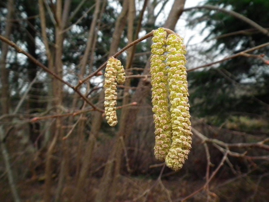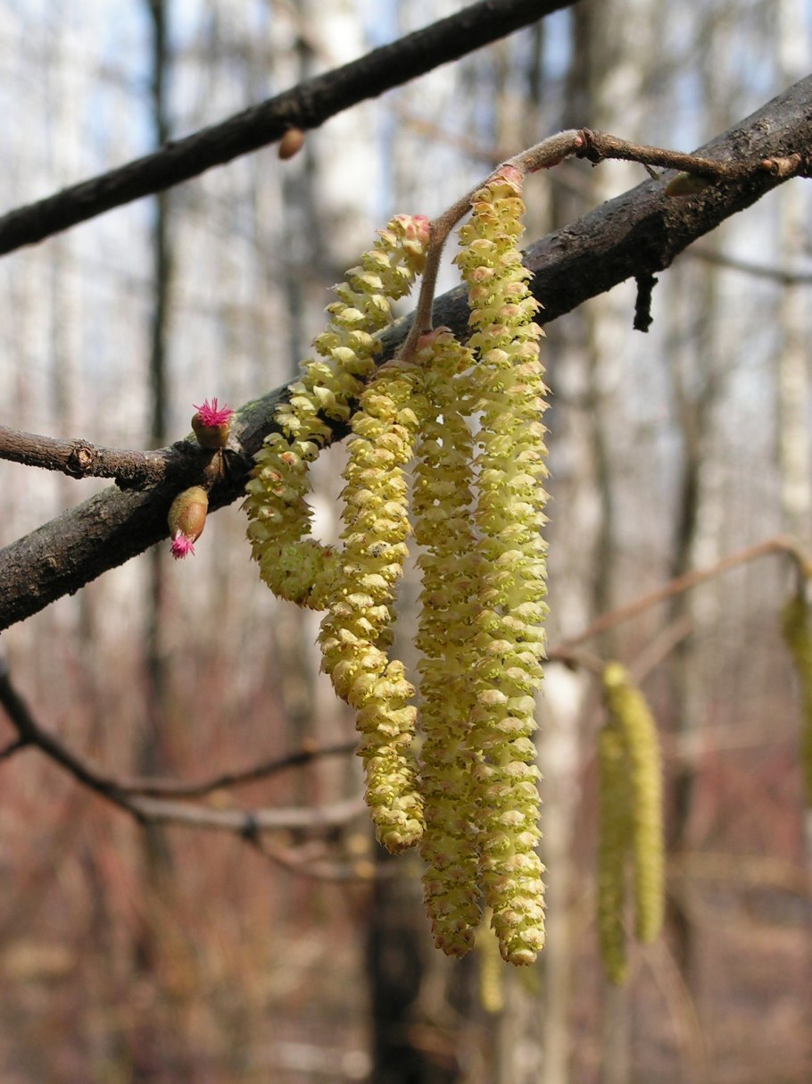 Лещина обыкновенная цветет