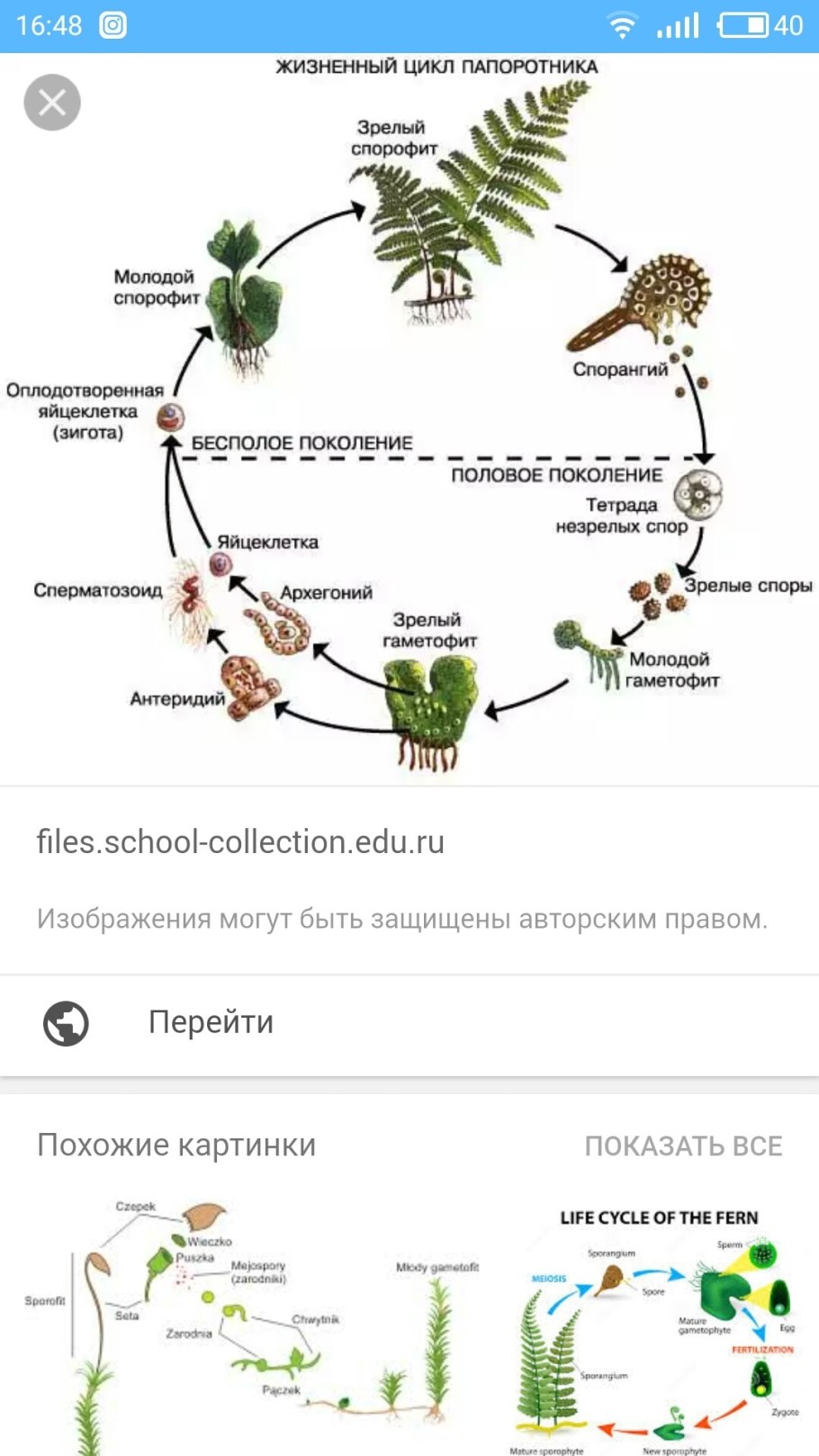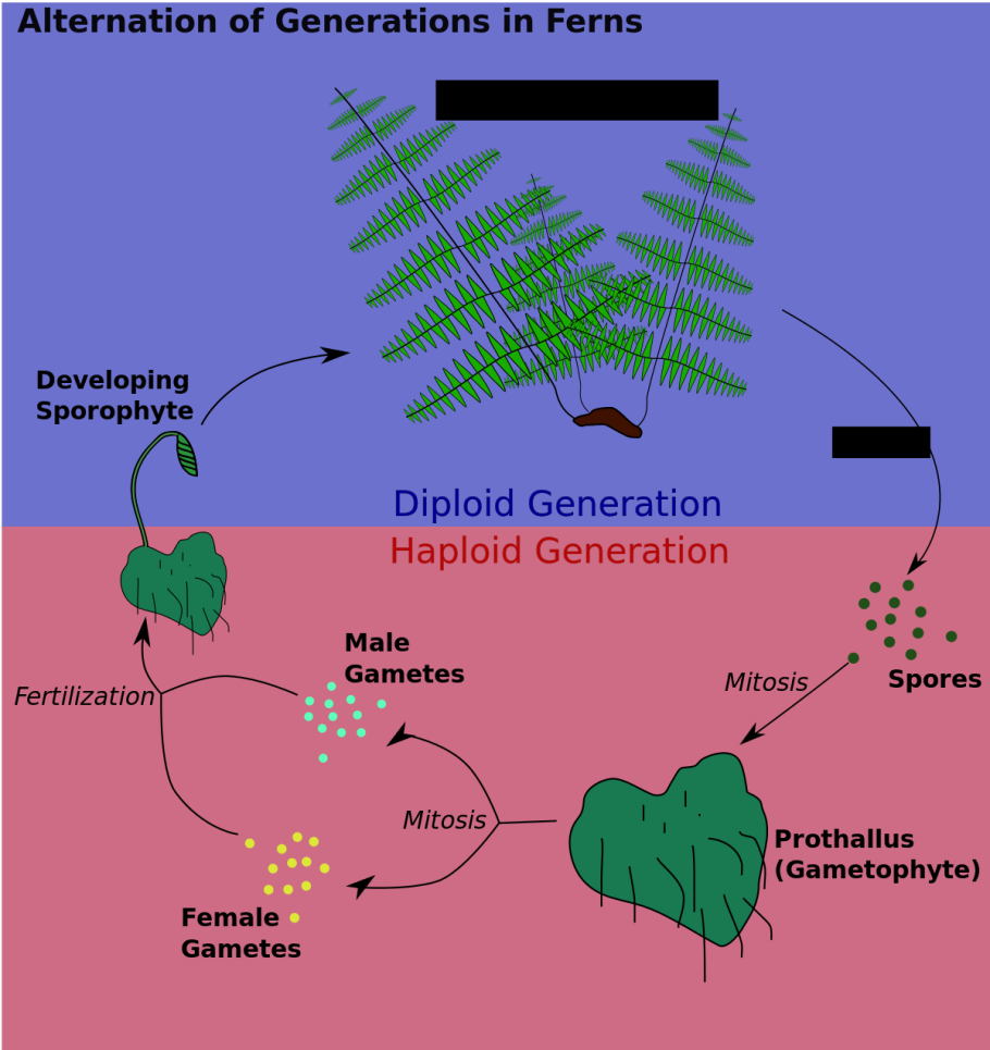 Цикл размножения папоротников схема