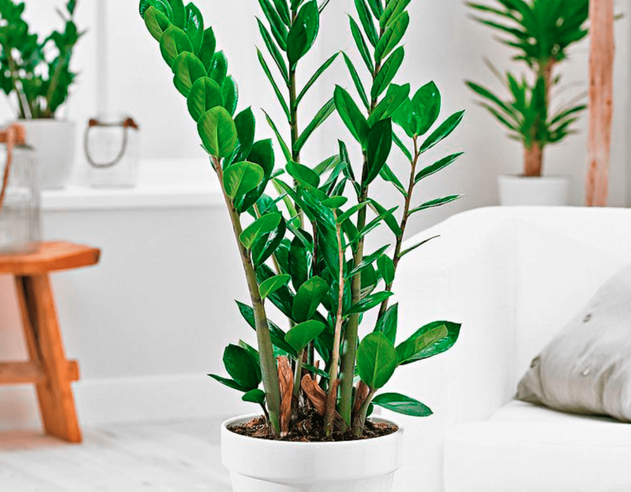 Замиокулькас в интерьере гостиной