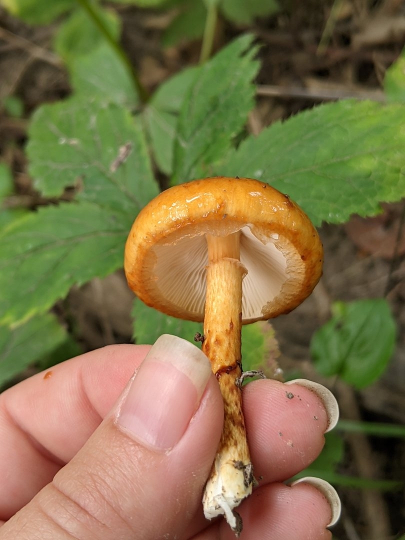 Рыжий гриб на тонкой ножке