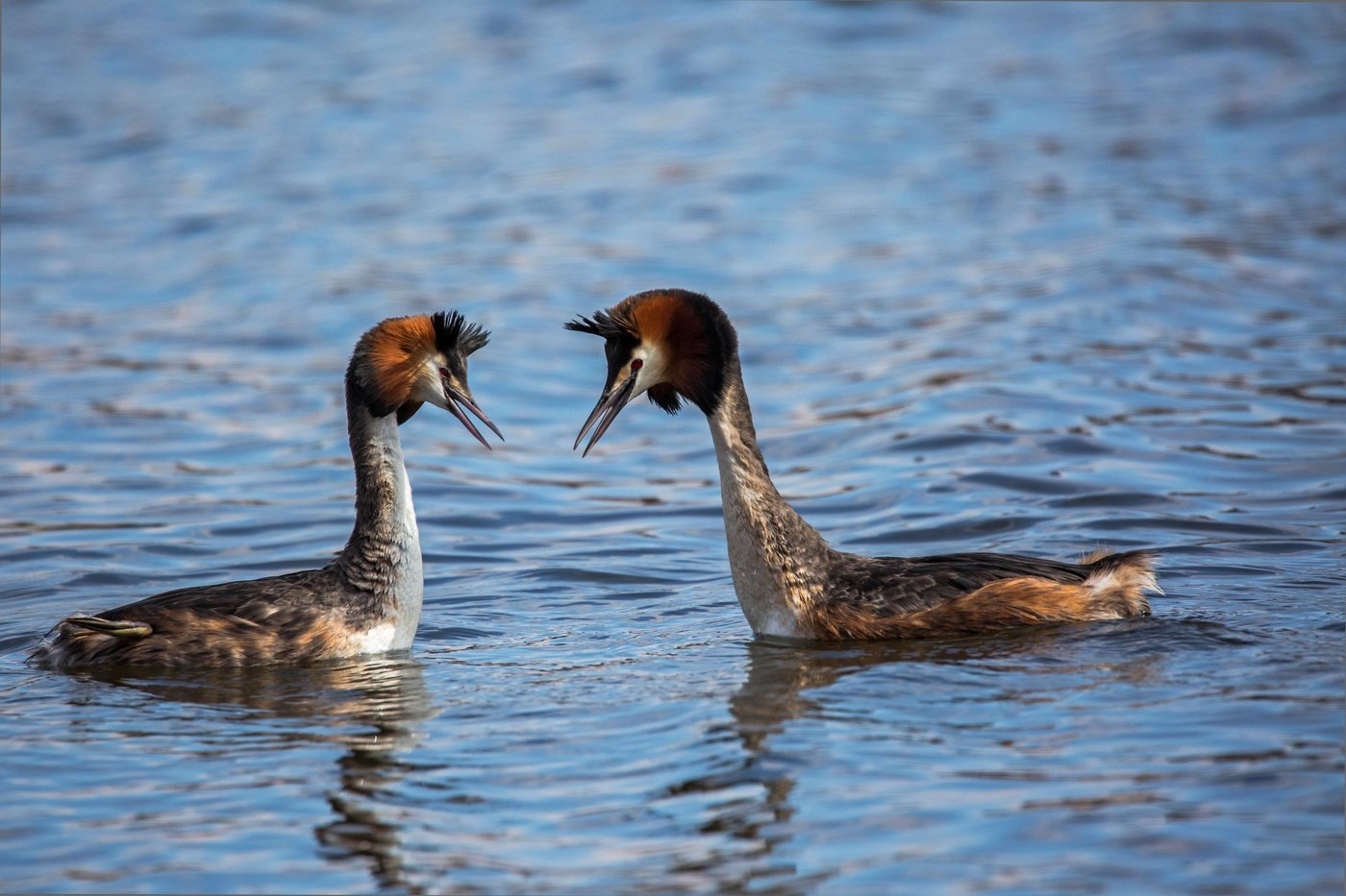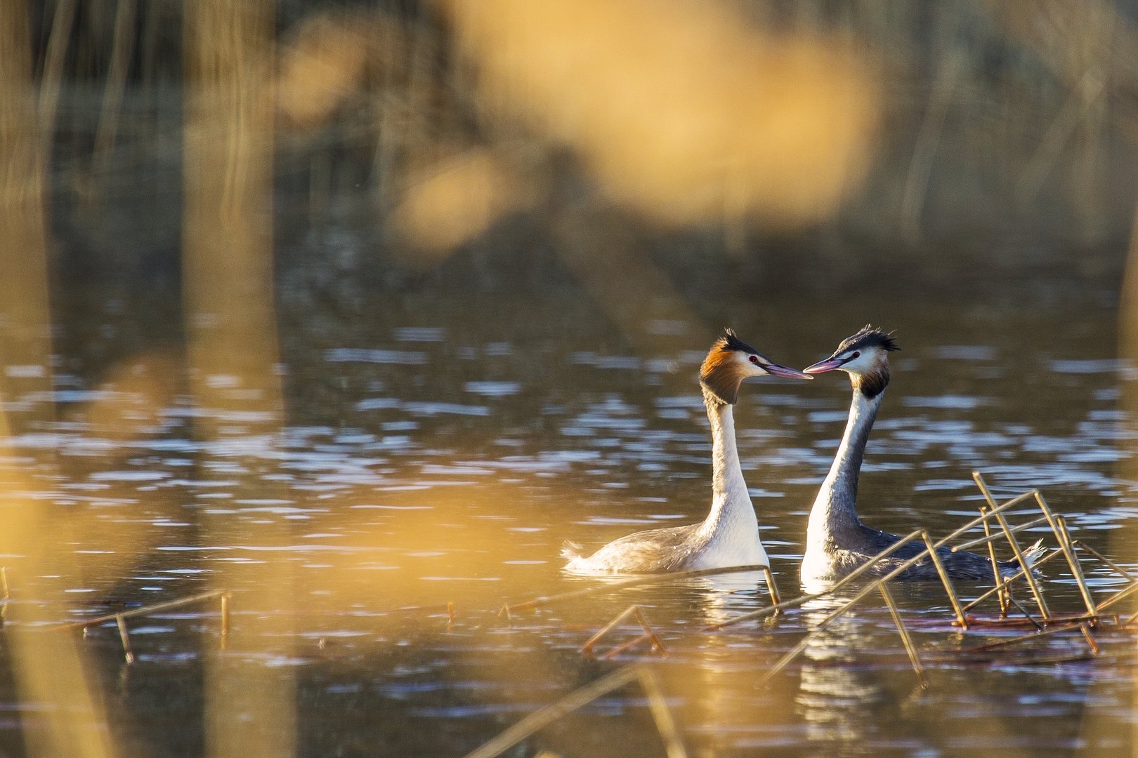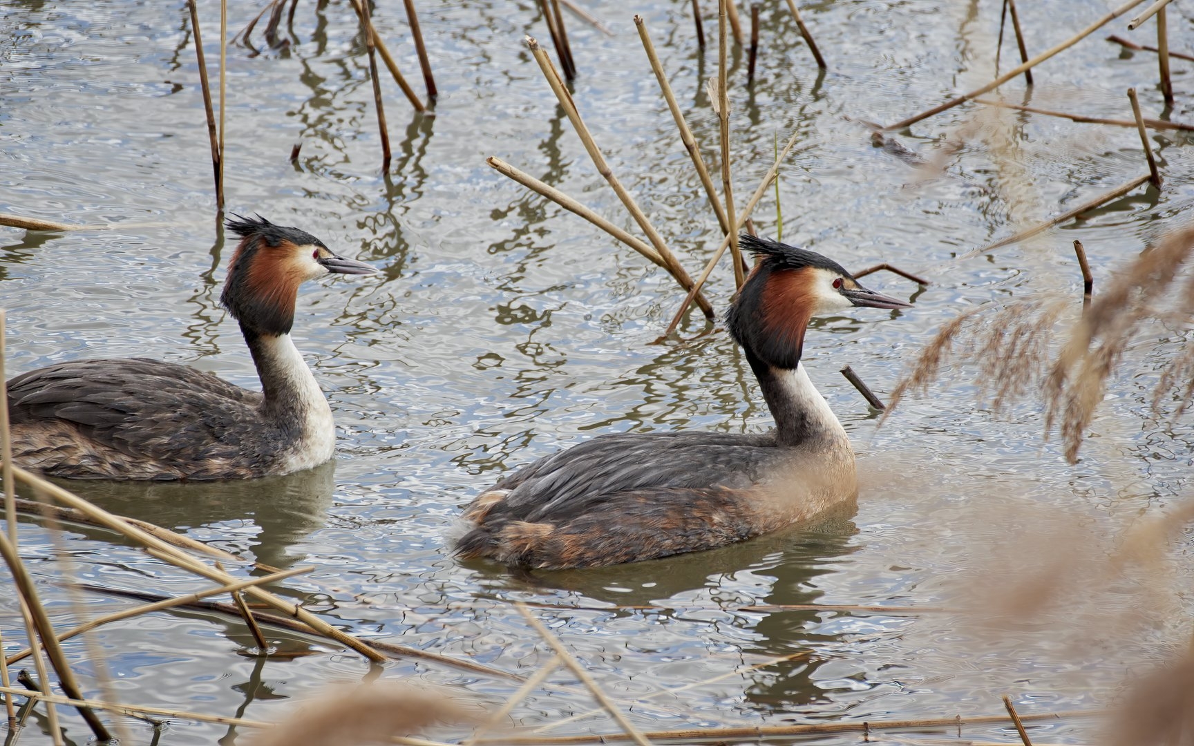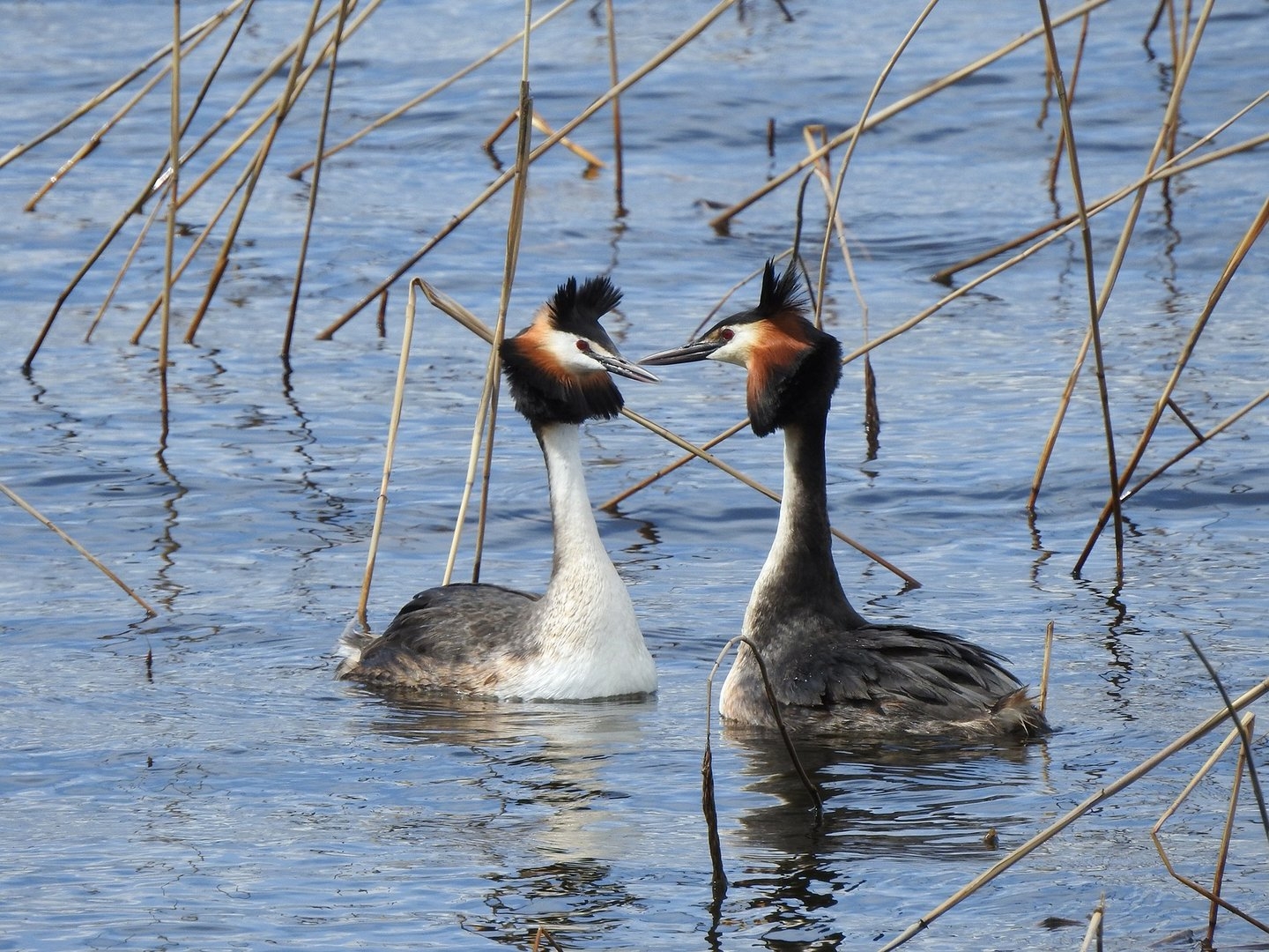 Чомга брачный танец