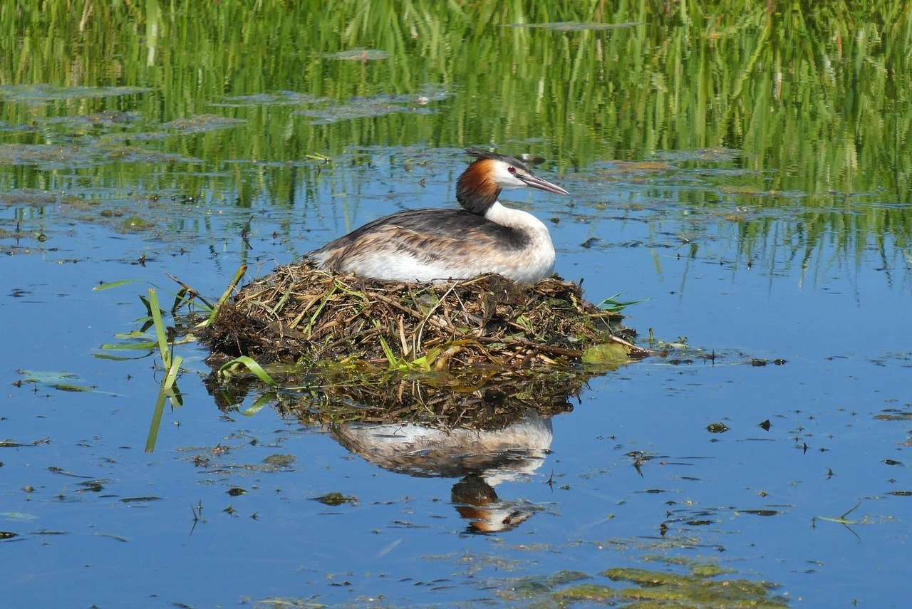 Поганка чомга птица