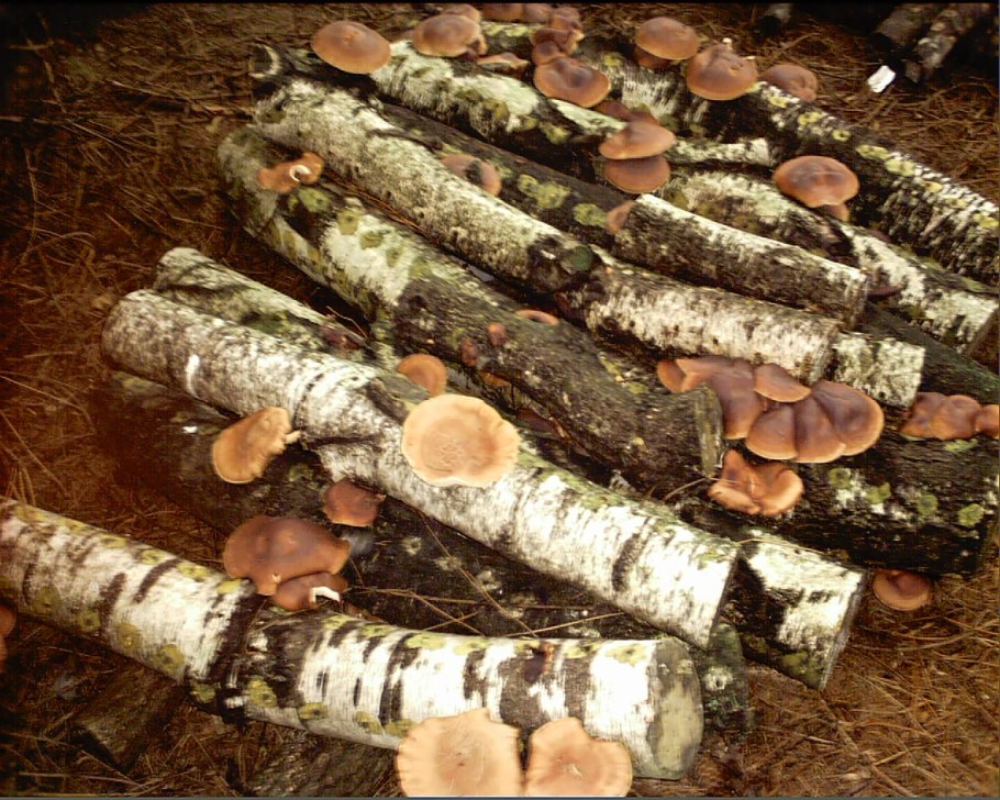 Шиитаке на берёзовом пне