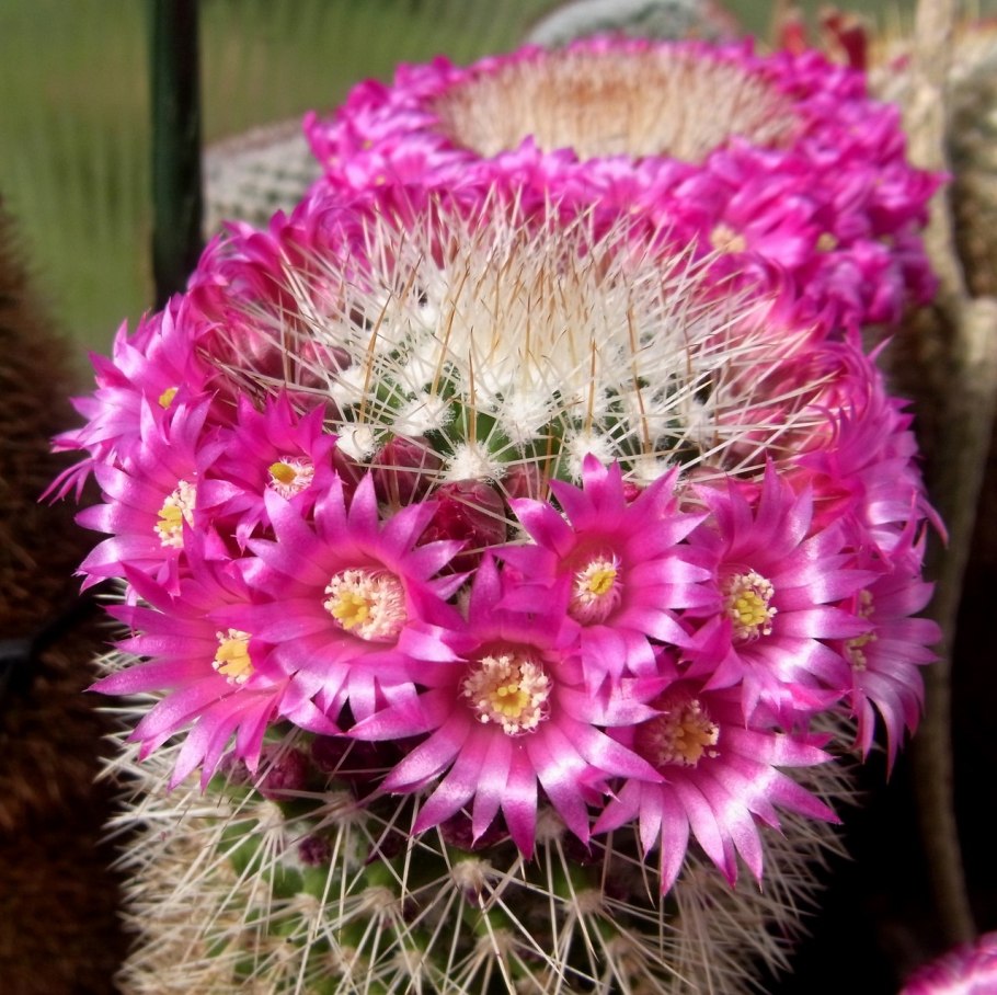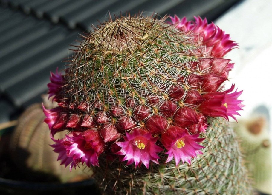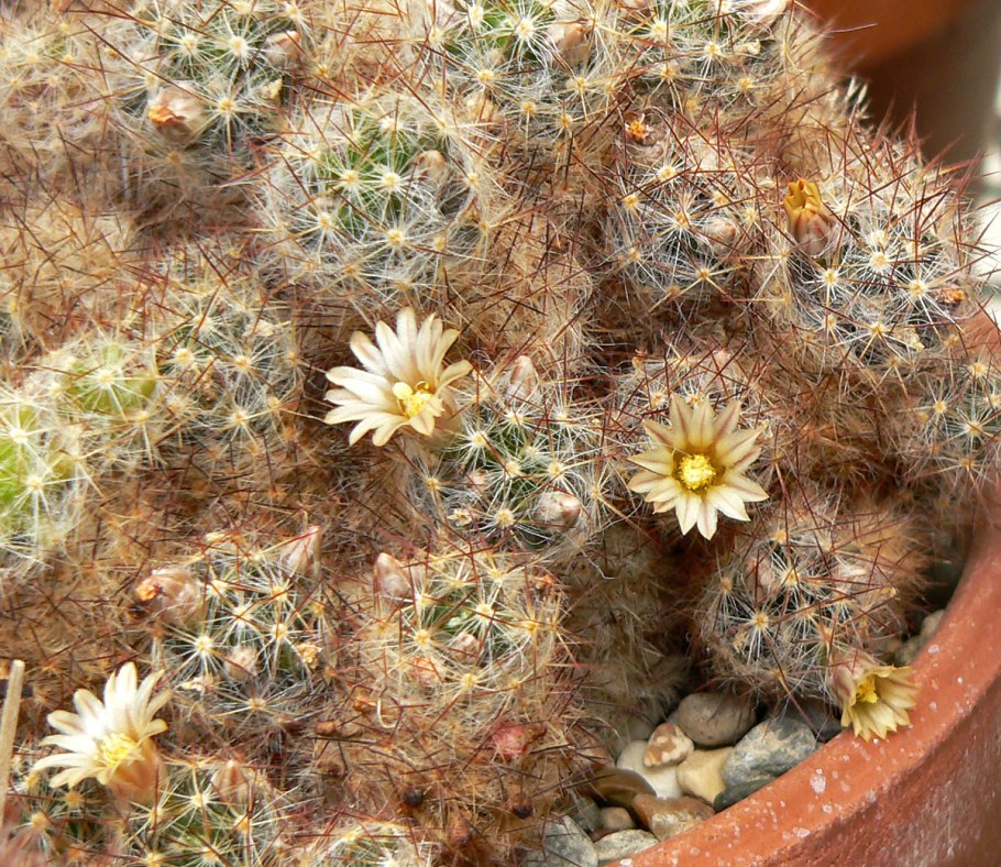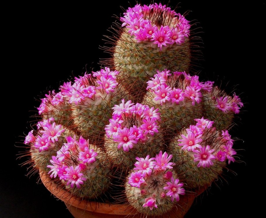 Кактус Маммиллярия цветет