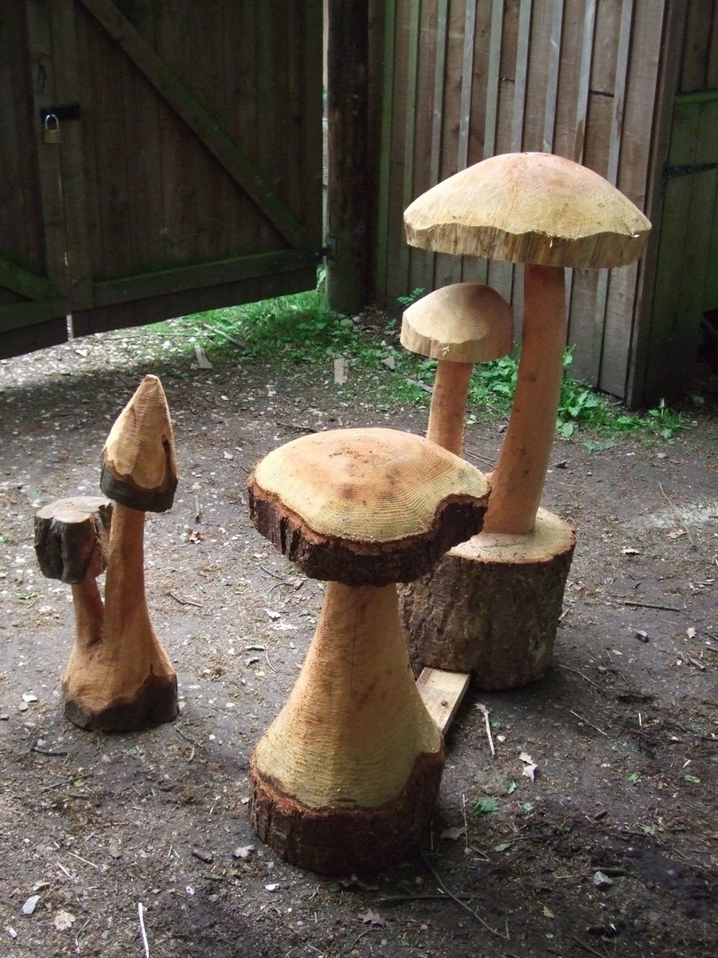 Деревянные грибы для сада