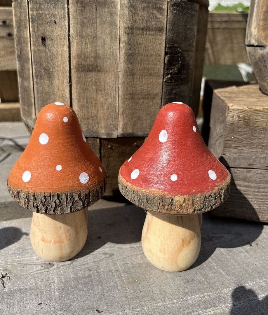Деревянные грибы покрашенные
