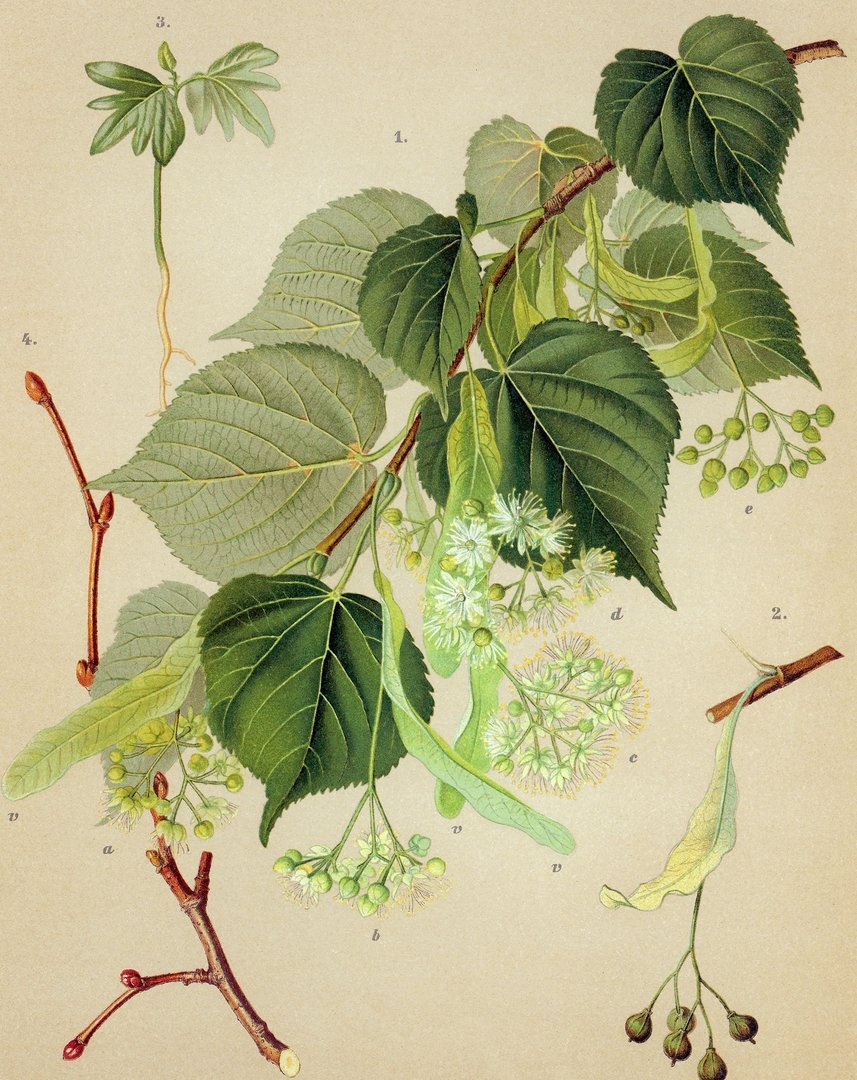 Tilia cordata ботанический рисунок