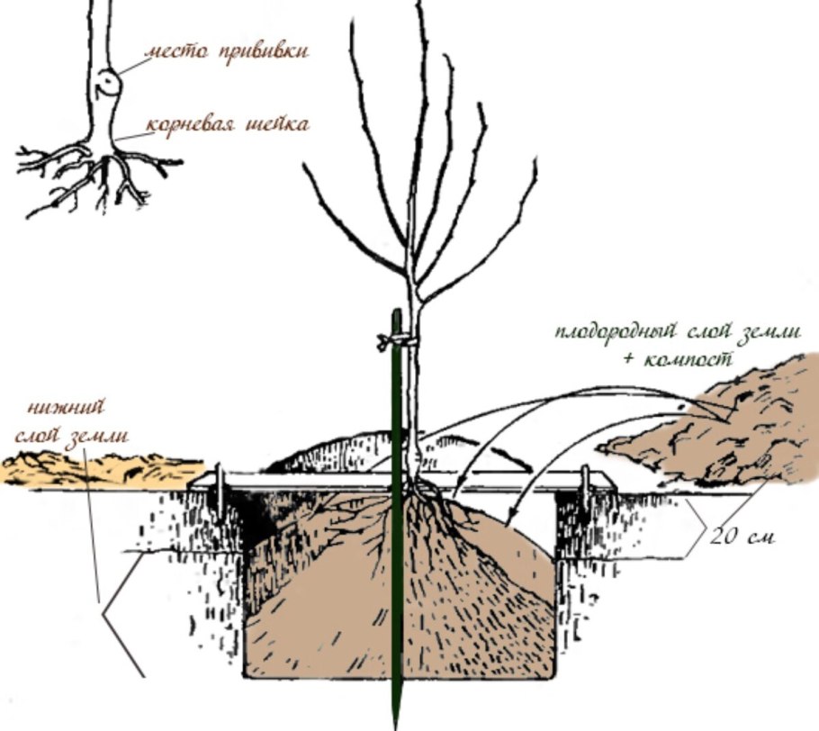 Схема посадки плодового саженца