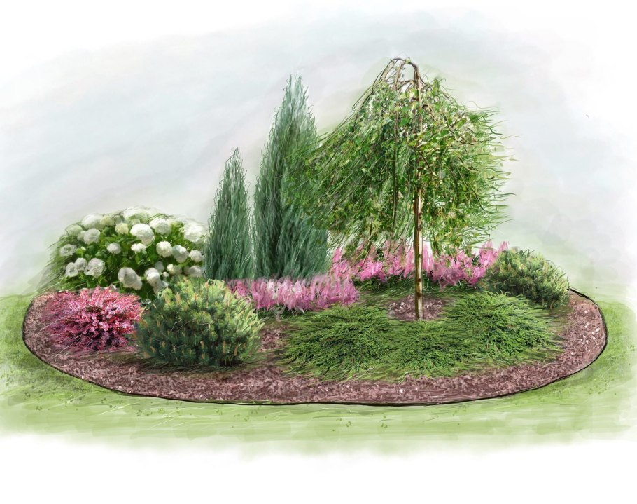 Береза повислая в миксбордере