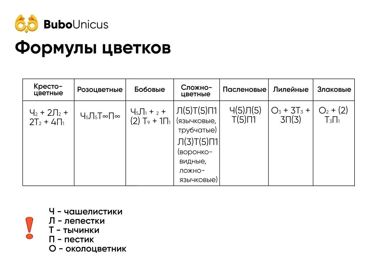 Ч л т п формула цветка семейства