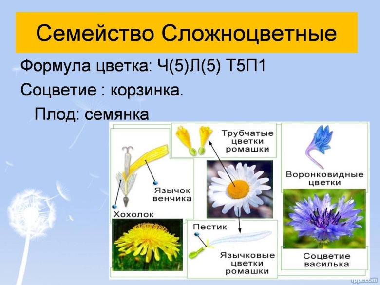 Особенности семейства сложноцветных растений