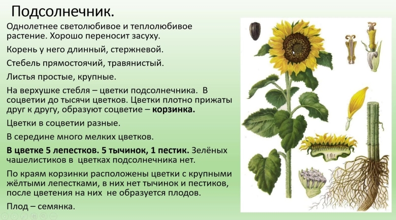 Строение подсолнуха