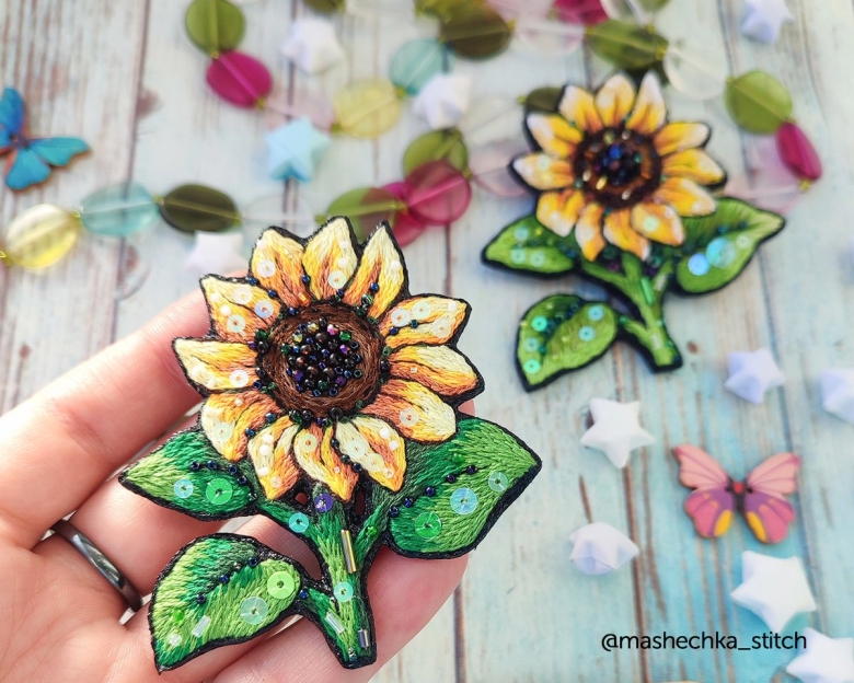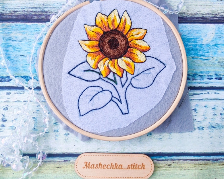 Вышитые подсолнухи гладью