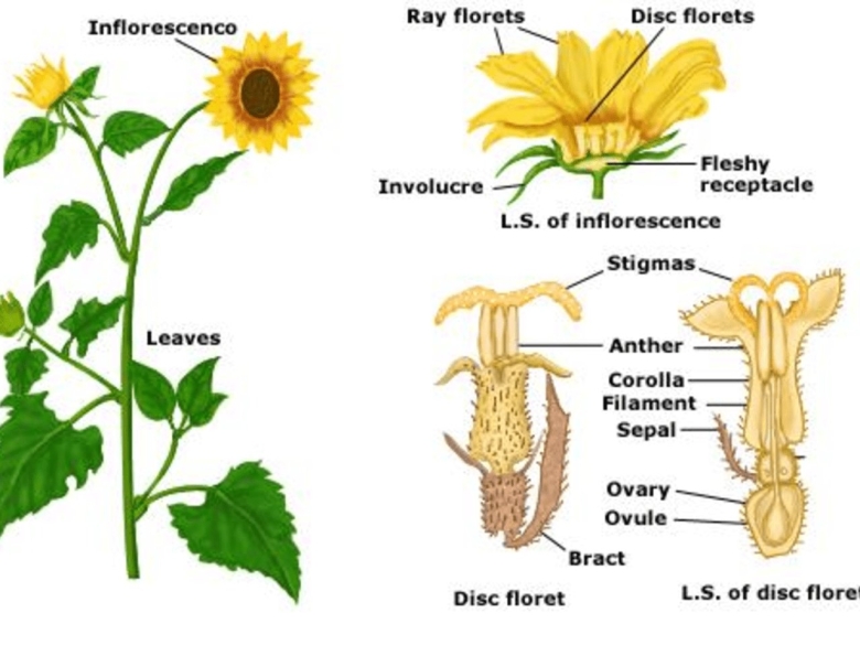 Строение соцветия подсолнечника