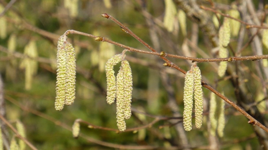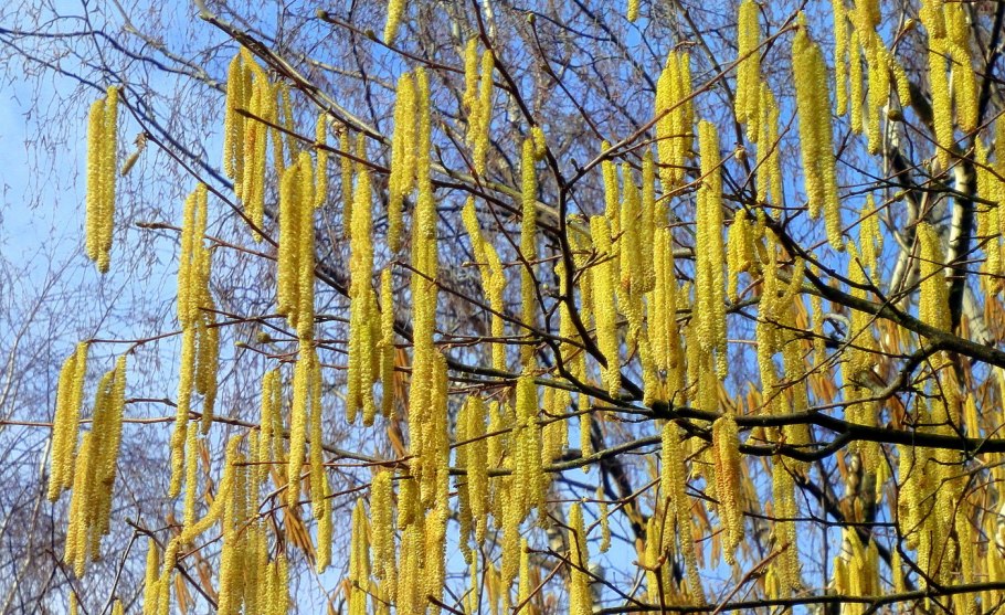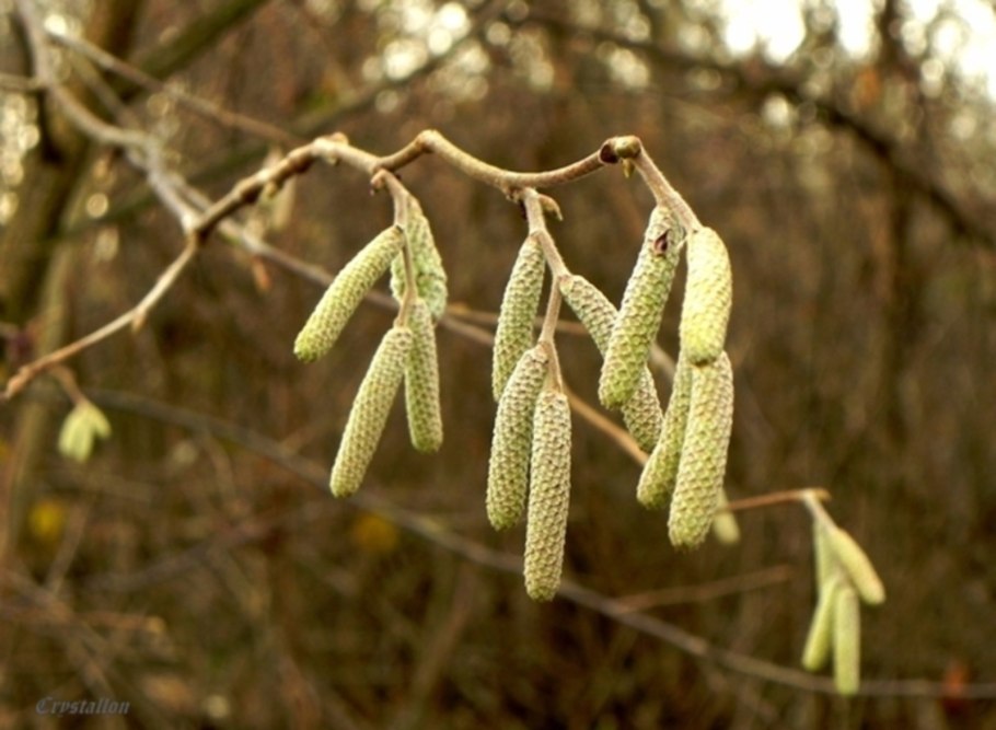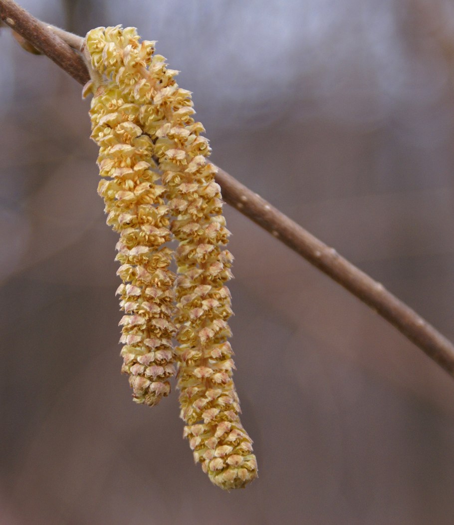 Лещина обыкновенная (Corylus avellana) соцветия окрас