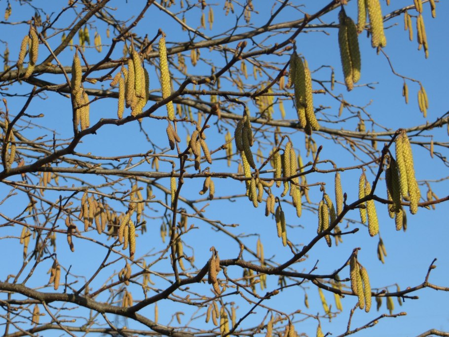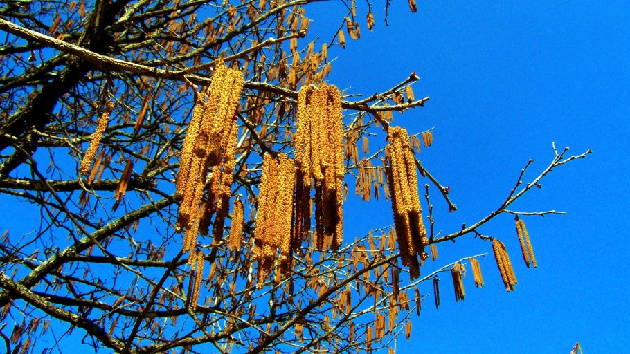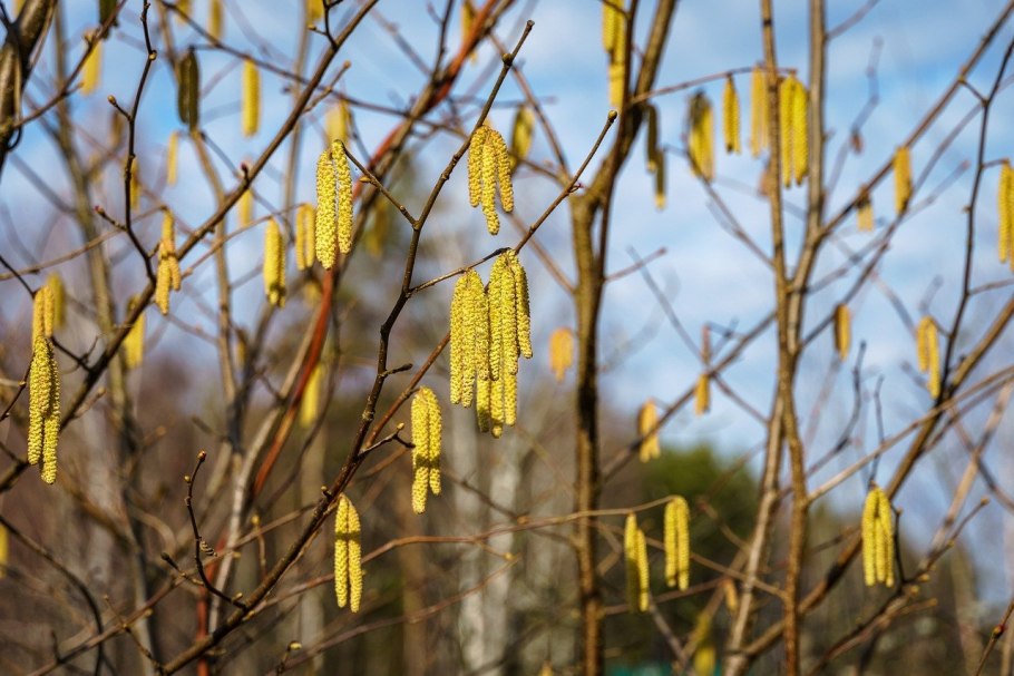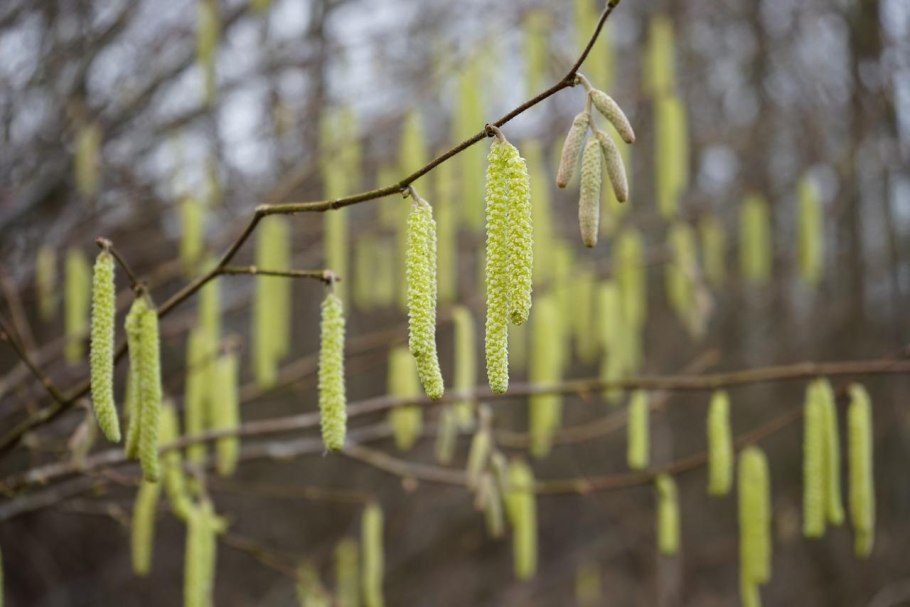 Сережки на орешнике весной