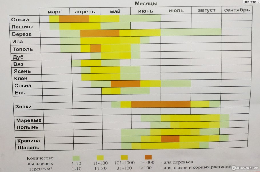 Поллиноз периоды цветения