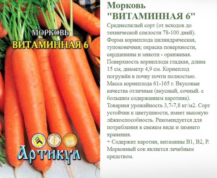 Морковь сорт витаминная 6