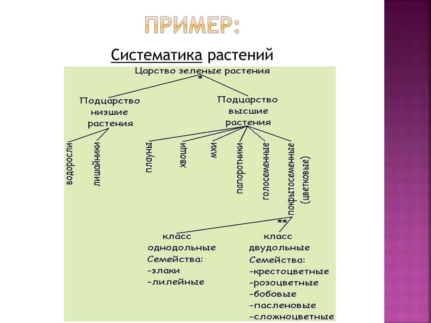 Схема классификации растений класс биология пасечник