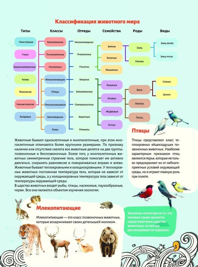 Таксоны животных таблица