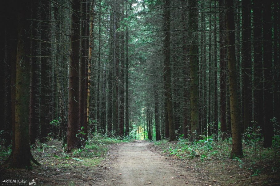 Темный еловый лес