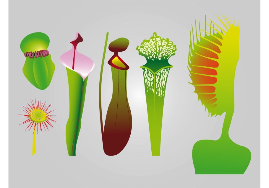 Хищные растения на белом фоне