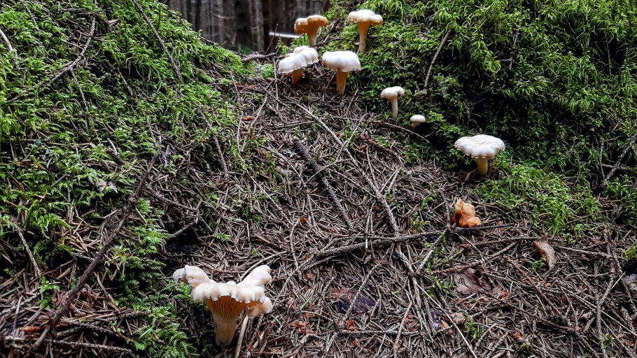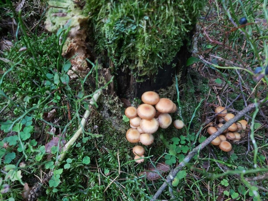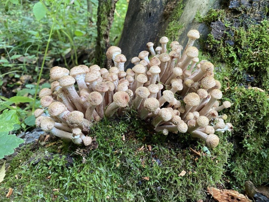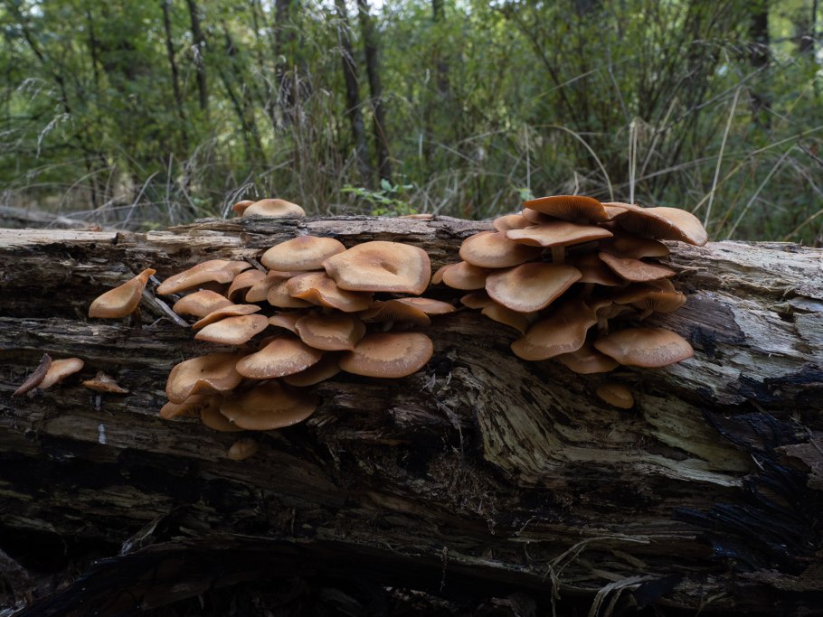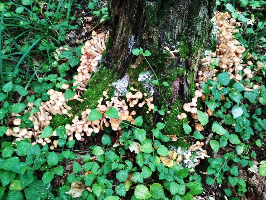 Валежина с большим количеством опят