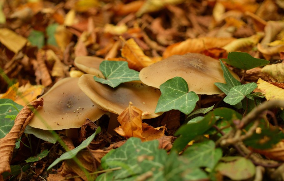 Грибы под листьями