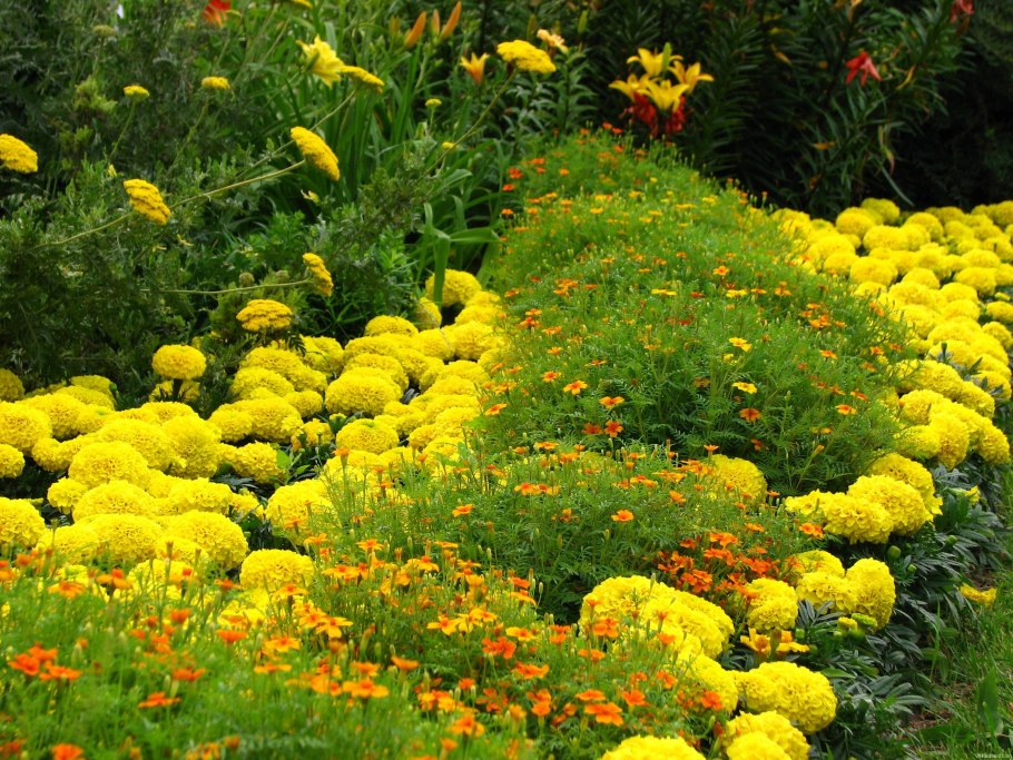 Клумбы бархатцы Сальвия цинерария