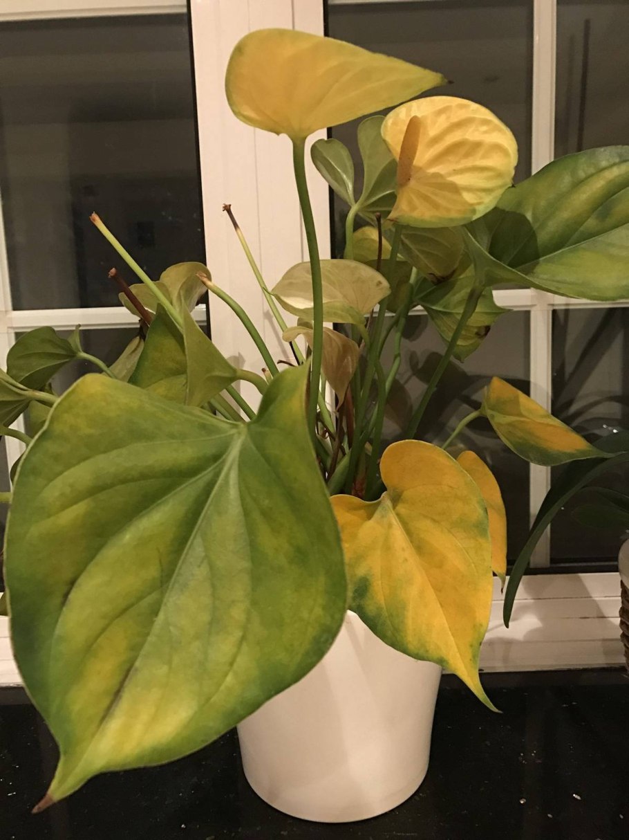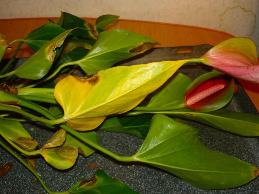 Антуриум желтеют листья и цветы